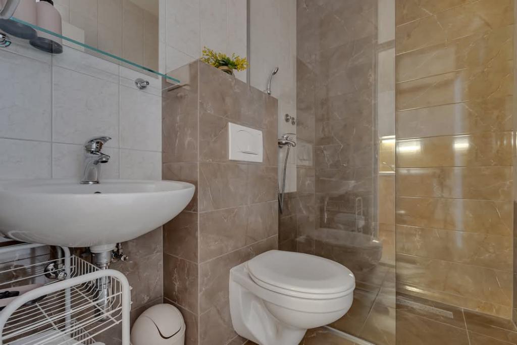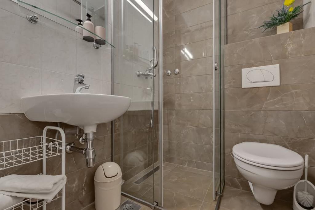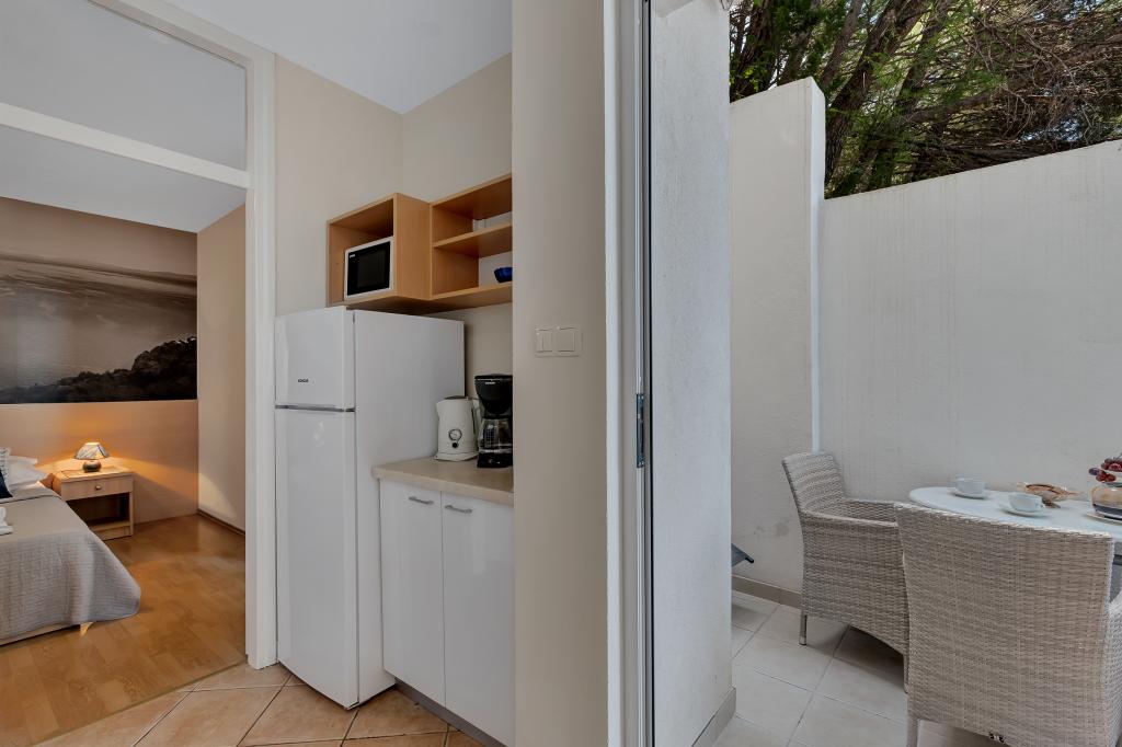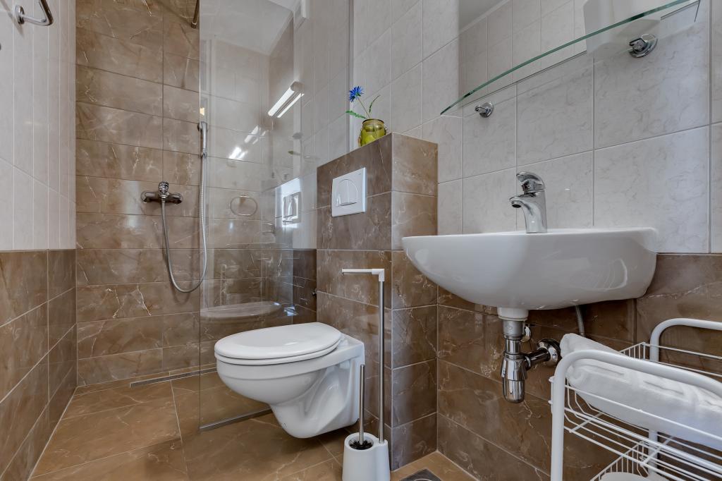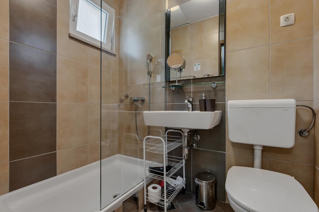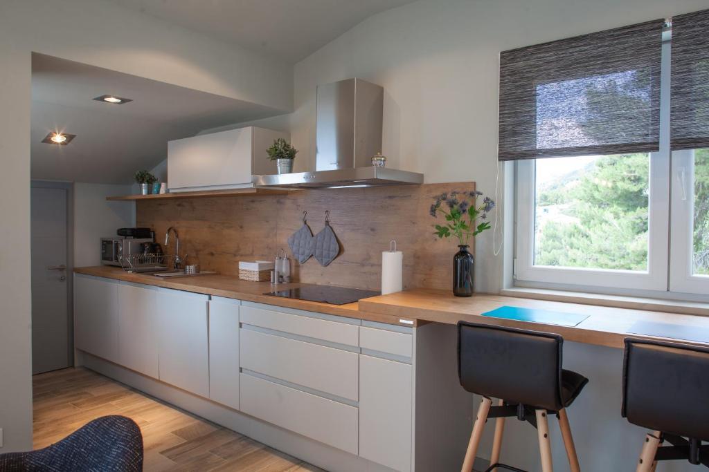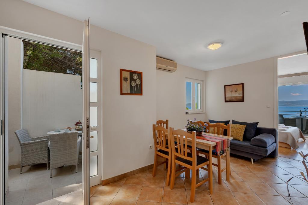 Naša hiša se nahaja v mirnem in zelenem delu Brela, ki se nahaja 50 metrov od morja. Do plaže, ki se nahaja neposredno pod hišo, lahko pridete po zasebnih stopnicah. Znamenita plaža Punta rata se nahaja približno 500 metrov od hiše, središče mesta pa je oddaljeno približno 10-15 minut hoje po čudoviti pokrajini ob morju. Vsi apartmaji so klimatizirani in imajo satelitsko televizijo ter dostop do interneta.