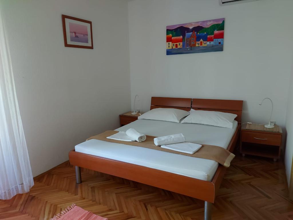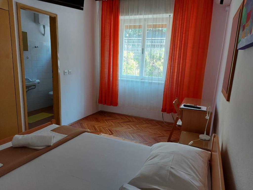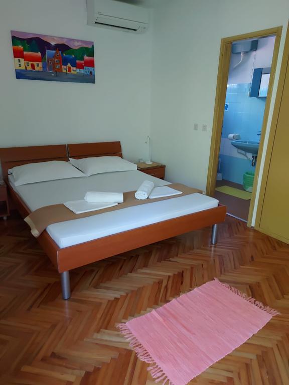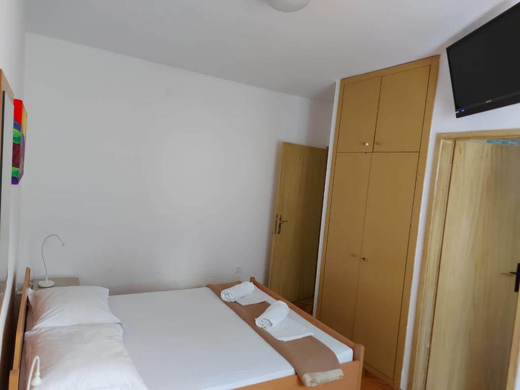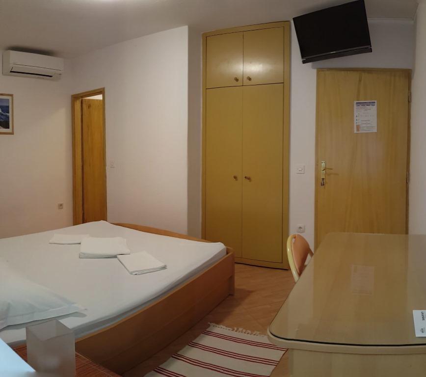 Hiša za najem, sobe Brela Šodan, se nahajajo v delu Brela imenovanem Soline. Hiša za najem ima 5 sob, veliko dnevno sobo cca 25 m2, kuhinjo cca 16 m2 in veliko teraso cca 40 m2. Vse sobe imajo lastno kopalnico, LED SAT TV 82 cm, klimo in hitri WIFI z neomejenim prometom. Celotno hišo je mogoče najeti kot večsobno stanovanje z lastno kuhinjo, teraso in dnevno sobo. Vse sobe imajo zakonsko posteljo in hiša sprejme 10 odraslih oseb. Najamete lahko tudi sobo s kopalnico in uporabljate kuhinjo za pripravo zajtrka in hitrih obrokov. V tem primeru boste imeli svojo mizo na skupni terasi s pogledom na morje. Brela Sobe Šodan se nahajajo 50 metrov od čudovite prodnate plaže, kot lahko vidite na priloženih slikah. Villa Šodan je oddaljena 5-10 minut hoje od centra Brela in 10-15 minut hoje od centra Baške Vode. Supermarket je 15 metrov od hiše. V dnevni sobi je TV s satelitskim sprejemnikom. Za vse podrobnejše informacije nas kontaktirajte po elektronski pošti.