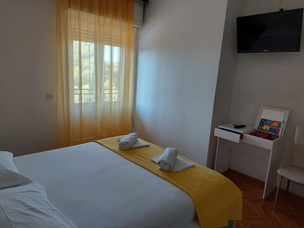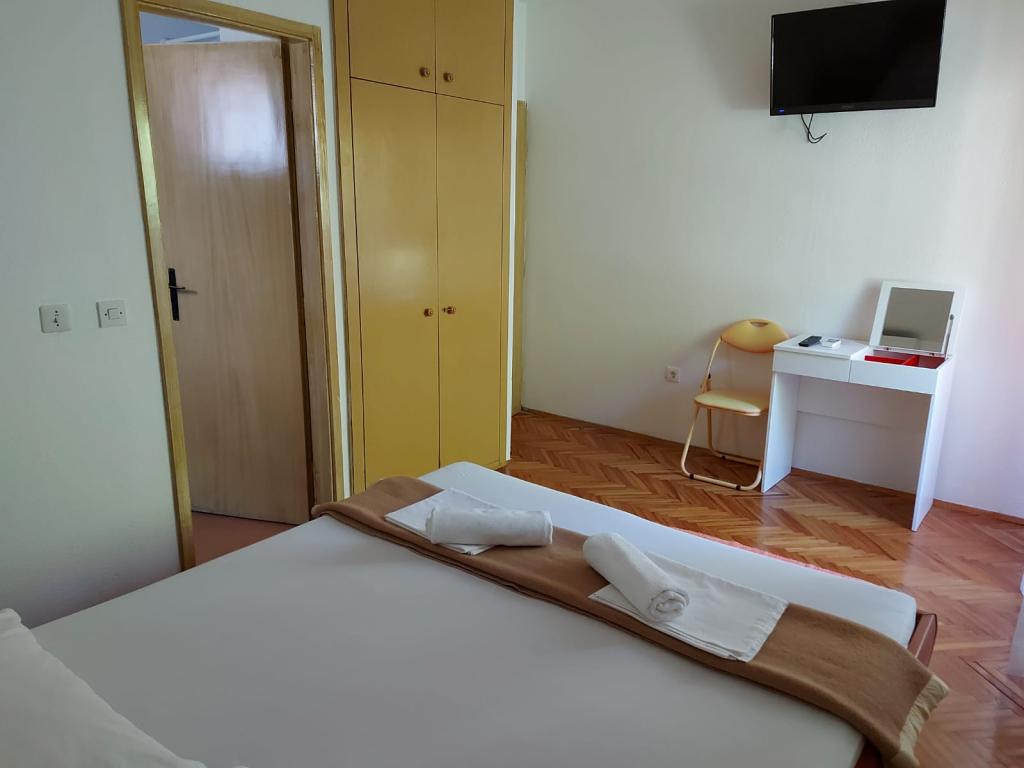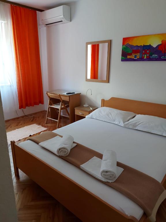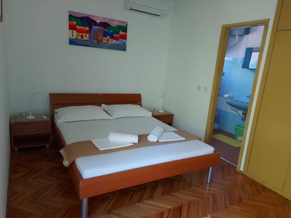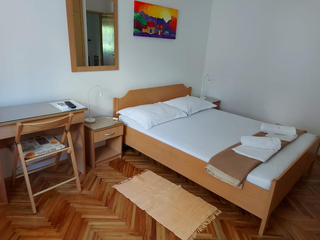 Hiša za najem, sobe Brela Šodan, se nahajajo v delu Brela imenovanem Soline. Hiša za najem ima 5 sob, veliko dnevno sobo cca 25 m2, kuhinjo cca 16 m2 in veliko teraso cca 40 m2. Vse sobe imajo lastno kopalnico, LED SAT TV 82 cm, klimo in hitri WIFI z neomejenim prometom. Celotno hišo je mogoče najeti kot večsobno stanovanje z lastno kuhinjo, teraso in dnevno sobo. Vse sobe imajo zakonsko posteljo in hiša sprejme 10 odraslih oseb. Najamete lahko tudi sobo s kopalnico in uporabljate kuhinjo za pripravo zajtrka in hitrih obrokov. V tem primeru boste imeli svojo mizo na skupni terasi s pogledom na morje. Brela Sobe Šodan se nahajajo 50 metrov od čudovite prodnate plaže, kot lahko vidite na priloženih slikah. Villa Šodan je oddaljena 5-10 minut hoje od centra Brela in 10-15 minut hoje od centra Baške Vode. Supermarket je 15 metrov od hiše. V dnevni sobi je TV s satelitskim sprejemnikom. Za vse podrobnejše informacije nas kontaktirajte po elektronski pošti.