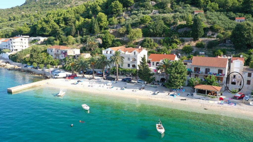 Med celino in polotokom Pelješac nekdo pred stoletji pozabljen košček raja. Brist. Majhno, mirno in gostoljubno mesto z nekaj sto prebivalci, ki je od glavne ceste navzdol proti morju. Pregledna, jasna in kopala v soncu. Nad mestom kot zaščitno branik dviga ponosno pobočju z oljčnimi nasadi in redke divje živali. V senci palm na peščeni plaži (ležalniki, sončniki, ..), ki jih lahko pričakujemo v družini Gateway v pokojninskem Frank, oblečeni v Brač kamna. Hiša iz pravljice, v katerih vrsta in gostoljubni ljudje, od leta 1968 sprejemajo in razvajajo svoje goste. Odprtimi rokami in srci. Prilagojeno hiša, zadnja v Brist (slepa ulica), in prav tako skrit pred hrupom. Ima 10 apartmajev. Hiša je terasa z razgledom na Gradca, Hvar in Pelješac. Na terasi, prijazni gostitelji svojim gostom, ki uporabljajo polovico ali večerjo, ki služijo okusne dalmatinske in mediteranske kuhinje. Lizat prste. Hrana je pripravljena večkrat nagrajenega oljčnega olja, ki so strokovnjaki med najboljše v Dalmaciji. S takšno hrano lahko vedno iti za požirek domačega žganja in kozarec rdečega vina.