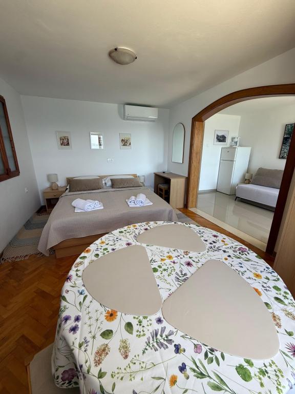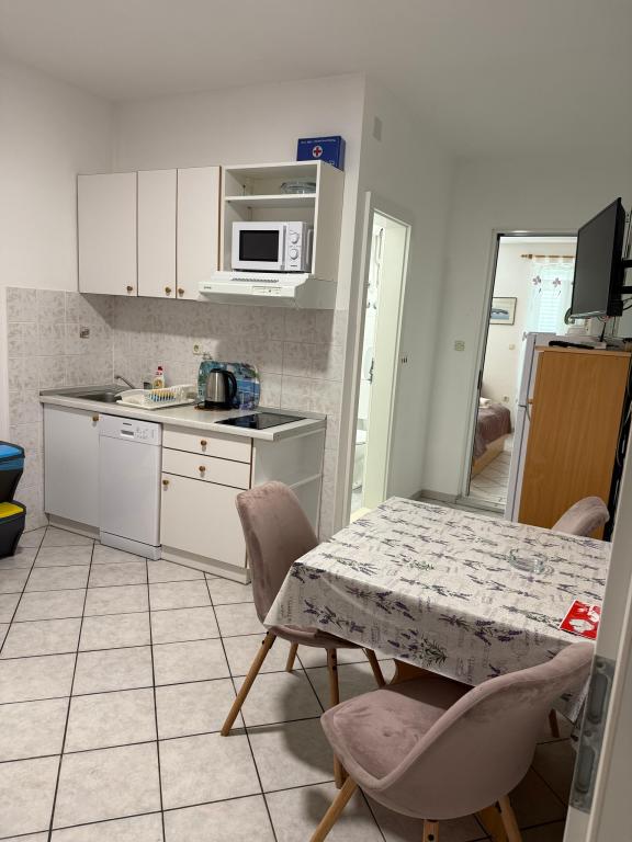 Turistična taksa nije vključena v ceno.Pijača dobrodošlice, 2 stoli, 1 dežnik, razmerje smeti iz stanovanja, ki nadomeščajo umazane brisače, kuhinjske krpe, splošno čiščenje in menjavanje posteljnine po 7 dneh oziroma po potrebi ..