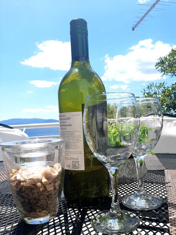 Apartma priporočam z vsem srcem in ti ljudje so nas preprosto navdušili. Dih jemajoči razgledi skozi okno, topel sprejem gostiteljev z vinom in žganjem. Kraj je naravnost popoln, če imate radi mir in tišino, hkrati pa bližino kavarne ali sladoleda. brezhibno čiste prostorne sobe, vzdušje domače. Da ne omenjam slastnih rib, ki smo jih prejeli od lastnika za slovo ... preprosto okusno. Že odštevamo do naslednjega leta.....zagotovo se še vrnemo.