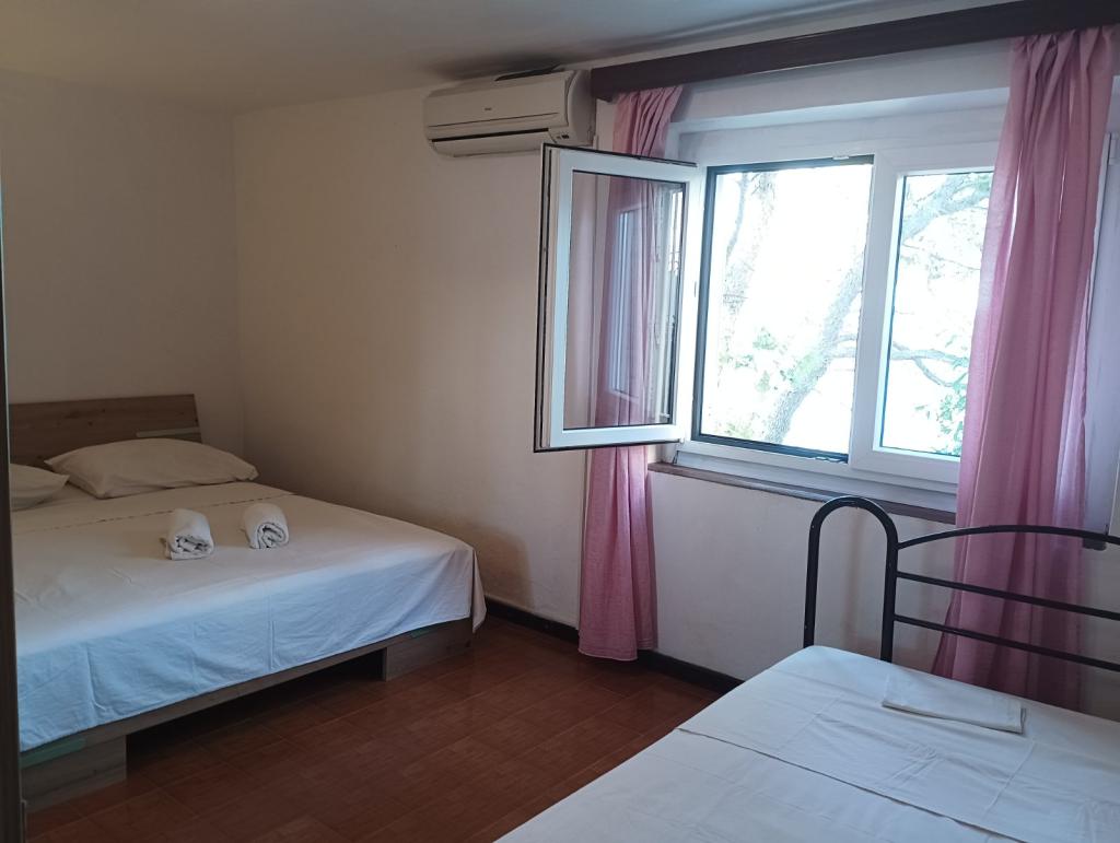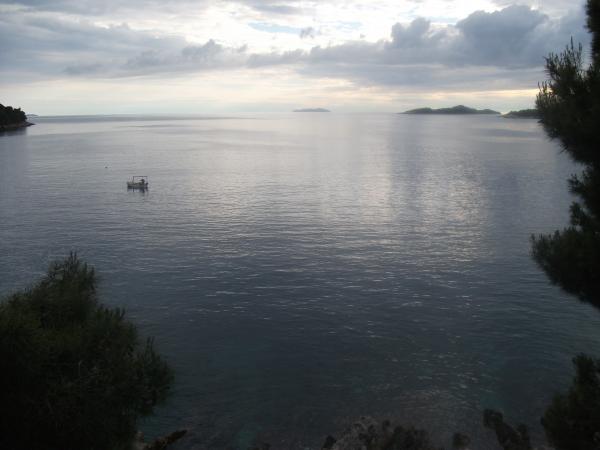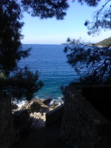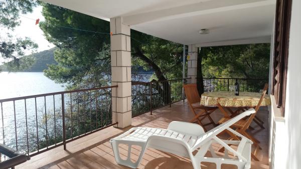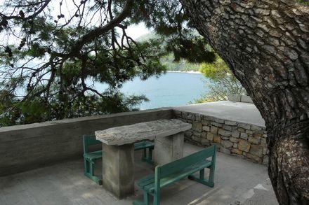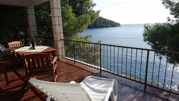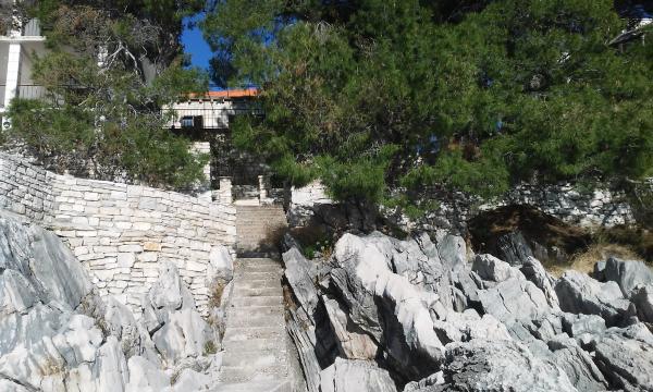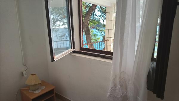 Nahajamo se v majhnem zalivu v bližini večjega naselja, z jasno in čisto vodo. Apartmaji se nahajajo v borovem gozdu v bližini morja. Lastnost ima velik vrt in priloženo plažo. Balkoni so velike površine, prostoren. Z balkona lahko vidite morskega dna. V dogovoru z lastnikom, ponujamo kratek vožnje z ladjo do bližnjih nenaseljenih zalivih.