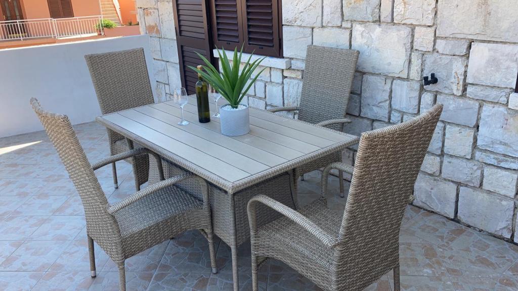 Apartmaji se nahajajo na mirnem mestu na otoku Korčula v zalivu Brna. Objekti, ki se nahajajo v pritličju in prvem nadstropju hiše, so od plaže oddaljeni 30m. Vključujejo dnevno sobo s kabelsko in satelitsko televizijo, popolnoma opremljeno kuhinjo, kopalnico s prho in drugimi toaletnimi potrebščinami. Apartma v pritličju hiše vsebuje eno spalnico z zakonsko posteljo (160x200), medtem ko apartma v prvem nadstropju vsebuje dve spalnici z zakonsko posteljo (160x200 in 180x200). Apartma v prvem nadstropju hiše ima čudovit pogled na morje in zaliv Brna. Na željo gosta nudimo otroško posteljico. Apartmaji so klimatizirani. Gostom je na voljo brezplačen brezžični internet in vsak apartma ima svoj žar.