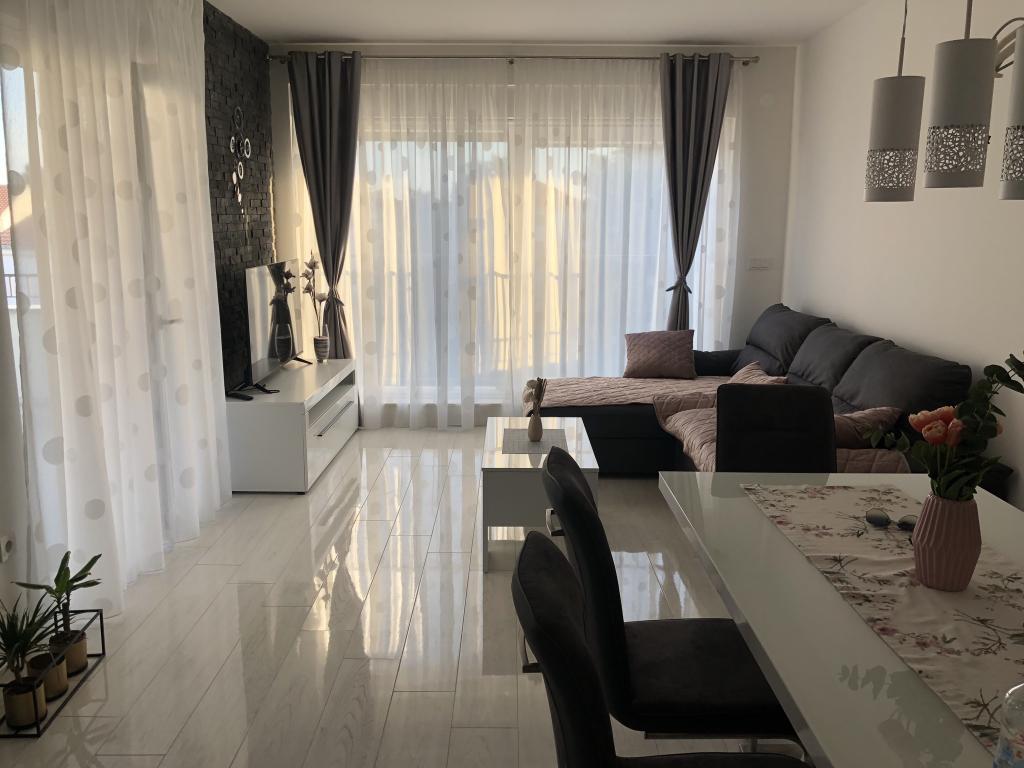 Apartma je popolnoma izpolnil naša pričakovanja - je moderen, čist, popolnoma opremljen, z veliko teraso. Idealna lokacija apartmaja: trgovina zraven, blizu plaže, dober dostop, lastno parkirišče. Lastnik apartmaja, gostoljuben, prisrčen in skrben ves čas našega bivanja. Zelo priporočamo!!!
