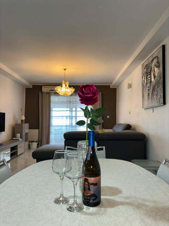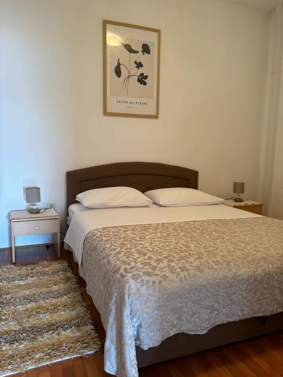 Popolnoma opremljen apartma s pogledom na morje. Na sami plaži, ki je čez cesto od apartmaja, je otroški park, glavna mestna plaža Rezalište pa je oddaljena 1 km od apartmaja. Trgovina z živili je oddaljena 500 m, vse je na voljo v krogu 5 km, vključno z nakupovalnim centrom. Dovoljeni so gostje s hišnimi ljubljenčki (psi do 7 kg). Zagotovljeno vam je parkirišče na dvorišču hiše za en avto (vključeno v ceno) in privez za čoln.