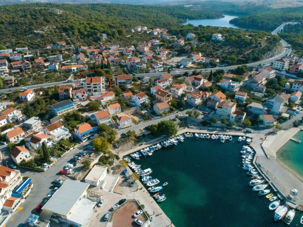 Novo na trgu. Moderno opremljen apartma s pogledom na morje in otok Krapanj. Apartma ima dve spalnici - ena z zakonsko posteljo in druga s pogradom + pomožno ležišče. Apartma je opremljen s 3 klimatskimi napravami, ki se nahajajo v spalnici in dnevni sobi. Čudovita terasa s pogledom na morje je opremljena z udobno kotno sedežno garnituro in ventilatorjem za zunanjo uporabo. Tenda na terasi nudi dovolj sence v vročih dneh. Dostop do morja je zagotovljen s spodnje strani apartmaja. Oddaljenost od morja je 60 metrov, zaradi česar je ta apartma idealen za sprostitev.