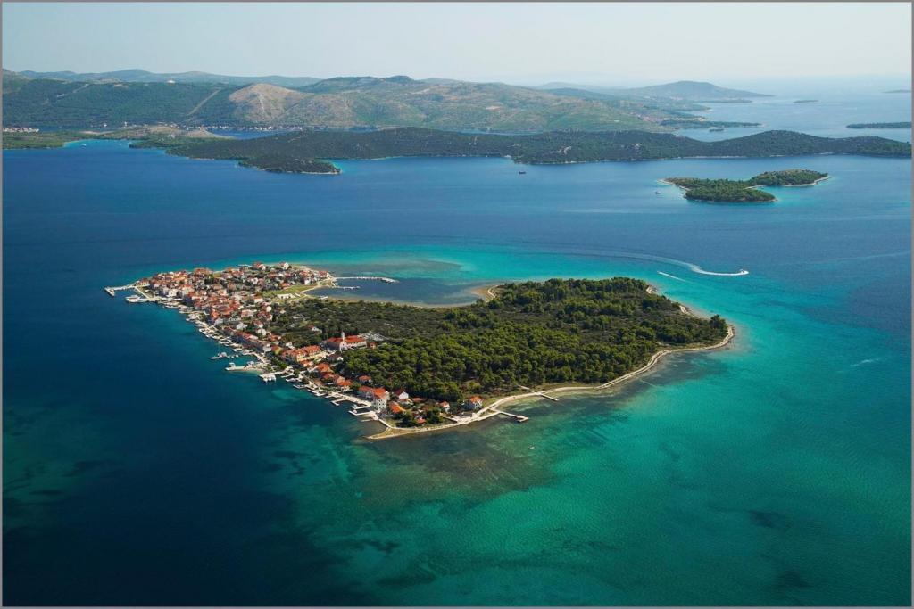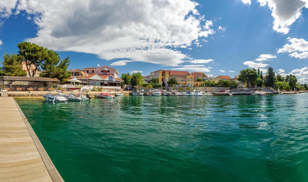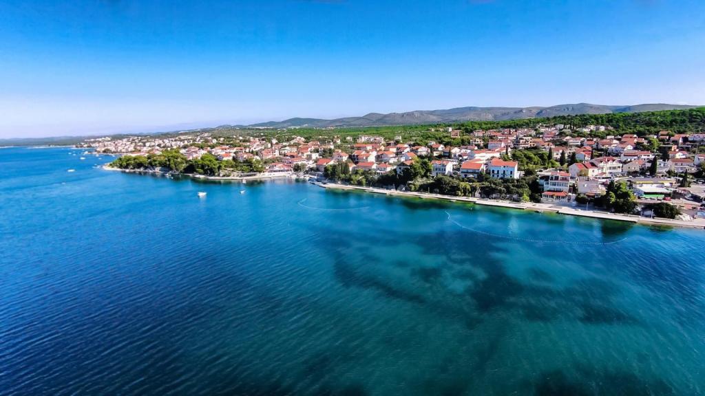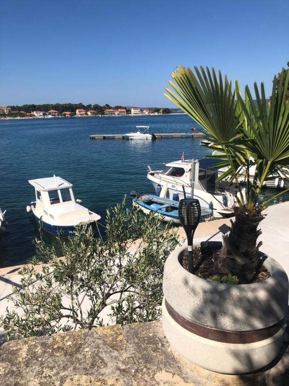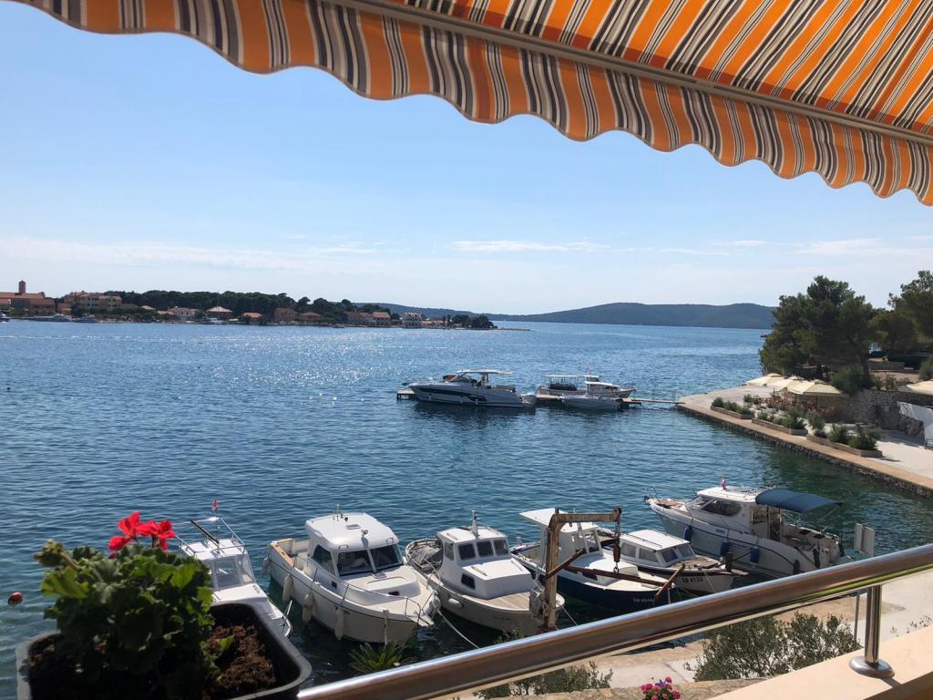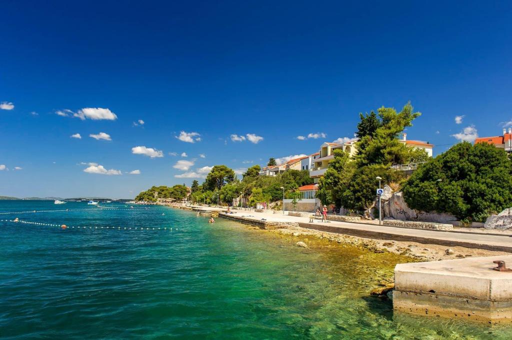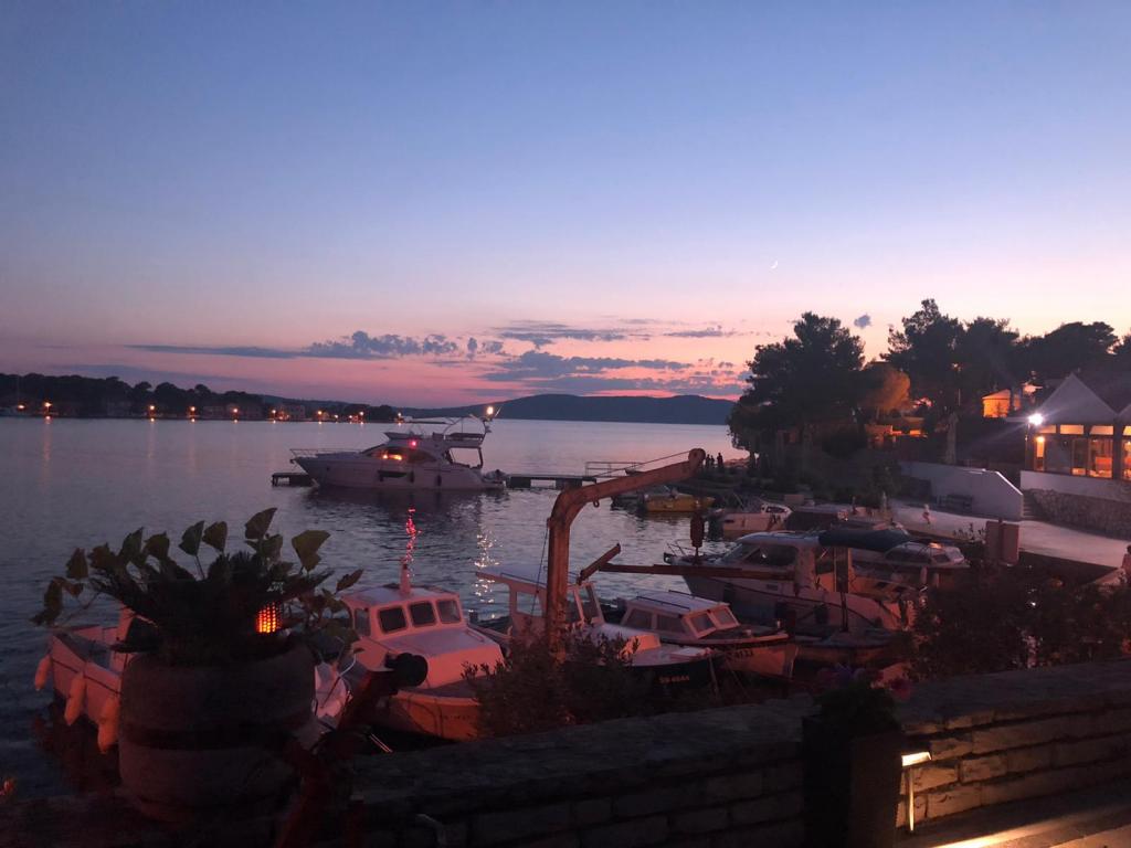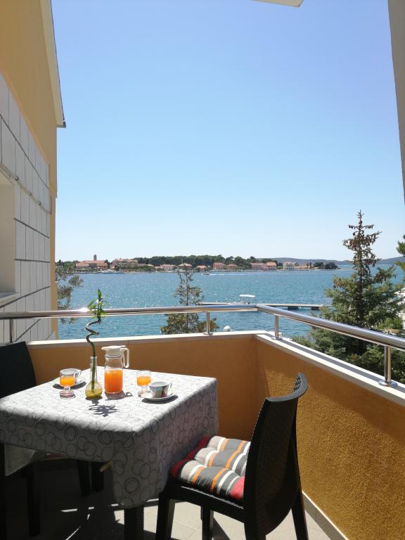 Naši apartmaji se nahajajo prve vrste do morja v čudovitem zalivu na Brodarici, ki ponuja pogled na najmanjši otok na Jadranu - Krapanj. Ponujamo 2 studio apartmaja, ki vsebujeta popolnoma opremljeno kuhinjo, kopalnico s tušem, brezplačen internet in parkirišče ter možnost uporabe žara. Imamo tudi dodaten privez za čoln. V neposredni bližini so številni kavarni, picerije, trgovine in restavracije. Tudi v polmeru 100m so zdravniška ordinacija, pošta, trajektno pristanišče, ki redno vozi na otok Krapanj in avtobusna postaja za mesto Šibenik. Idealno izhodišče za bližnji narodni park Krka in Kornati ter za mesto Šibenik, ki ponuja bogato kulturo in različne kulturne in zgodovinske spomenike. Če izberete naše apartmaje, smo prepričani, da boste preživeli prijeten in nepozaben dopust.