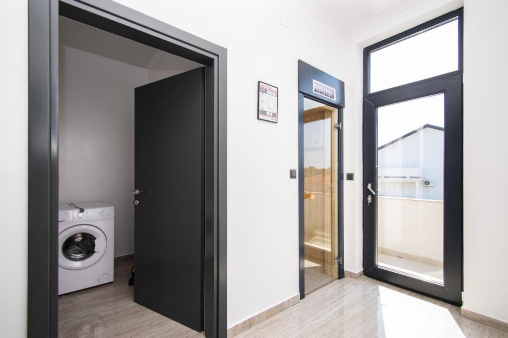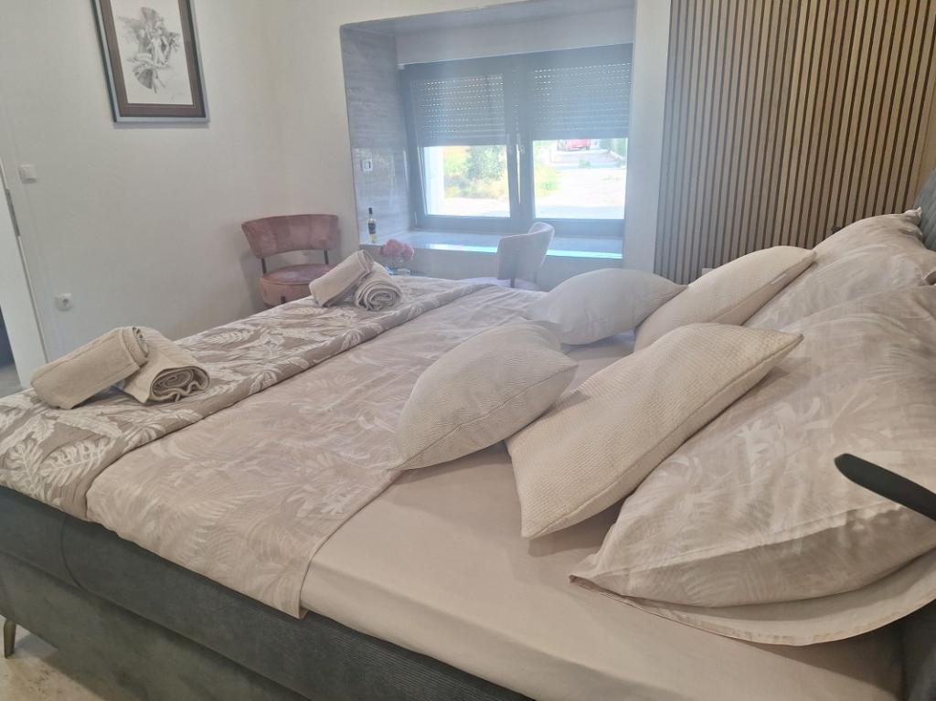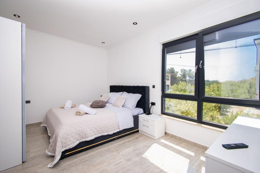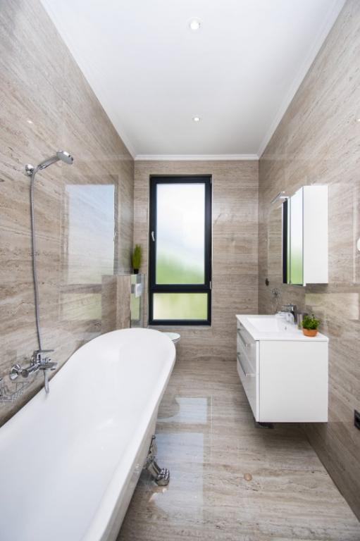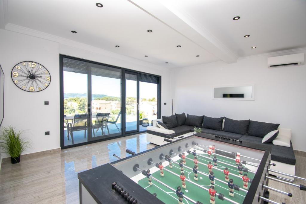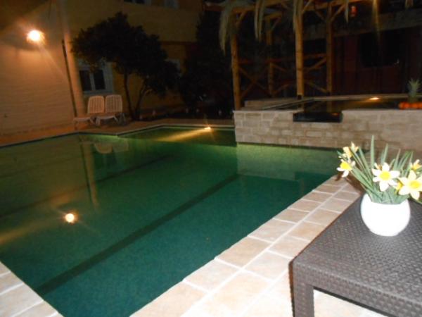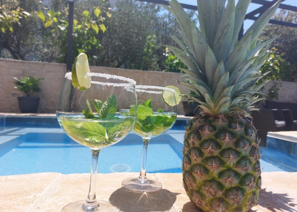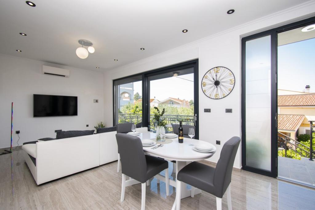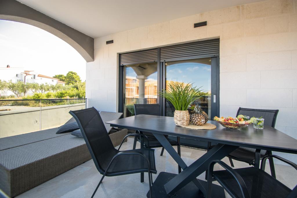 Hiša za 10 oseb z bazenom in jacuzzijem se nahaja v mirnem predelu Brodarice, obdana z veliko zelenja in cvetja. Prva dva apartmaja sta v pritličju, eno ima 45 m2, drugo pa 50 m2. Vsak apartma ima dvoposteljno sobo, kuhinjo, raztegljiv kavč, kopalnico in teraso z mizo in stoli. Tretji apartma meri 90 m2 in se nahaja v prvem nadstropju, ima dve veliki dvoposteljni sobi, veliko dnevno sobo, kuhinjo, kopalnico in 45 m2 veliko teraso z mizo in stoli. Primeren je za malo večjo družino in prijatelje. Apartma je klimatiziran. Četrti apartma je luksuzno urejen, cca 100m2, ima veliko dnevno sobo, popolnoma opremljeno kuhinjo, veliko sobo s televizijo in klimo, apartma ima tudi savno. na strehi je jacuzzi z veliko teraso. vsak apartma ima klimo in vsaka soba ima tudi televizijo. Bazen je skupen. Hiša je od morja oddaljena 5-6 minut hoje. Poleg hiše se nahajata še dva apartmaja, eden je 110m2 luksuzno opremljen, drugi pa 55m2.
