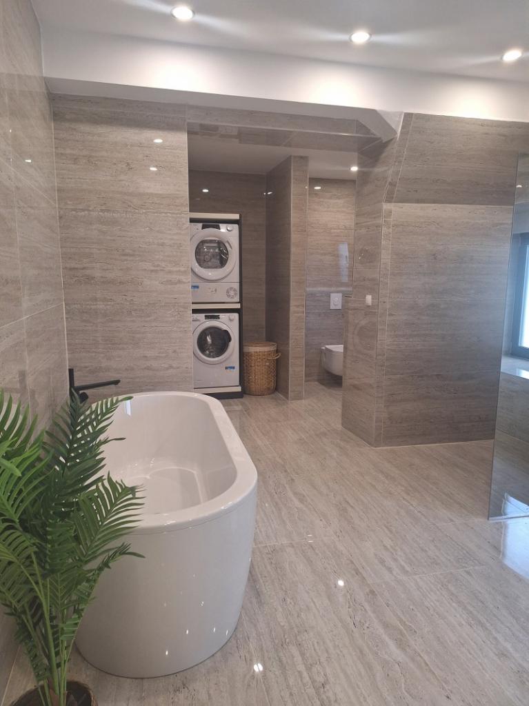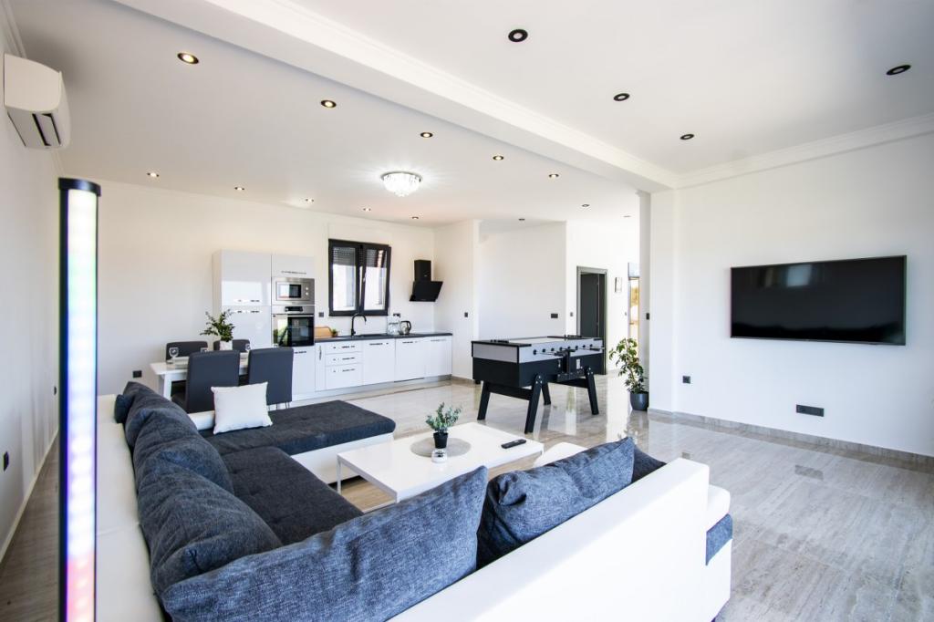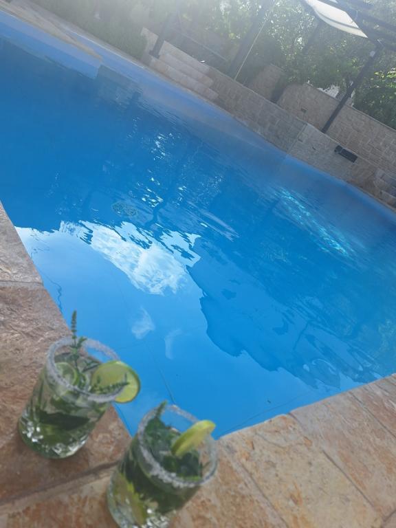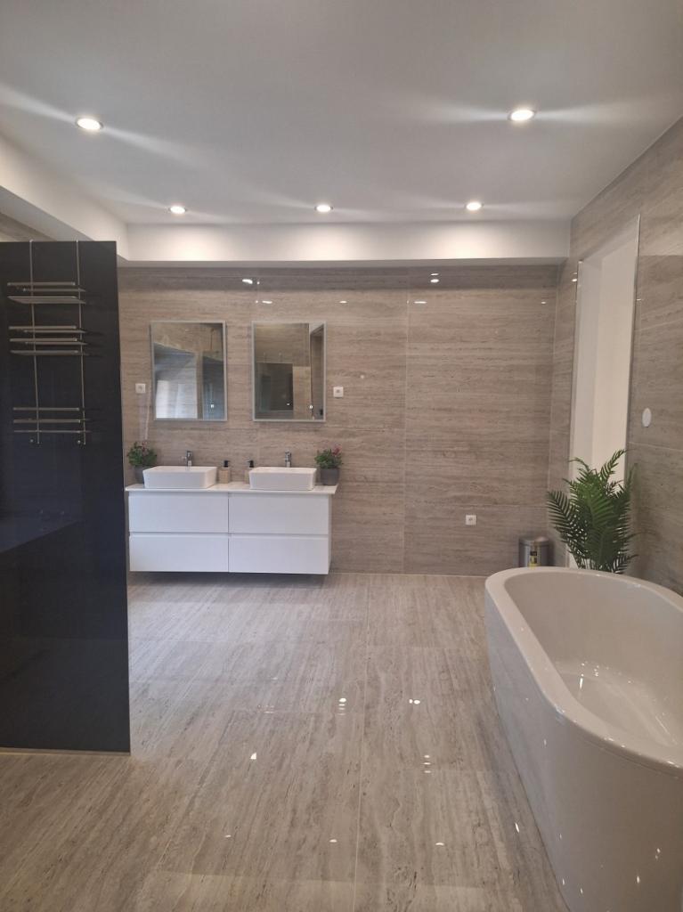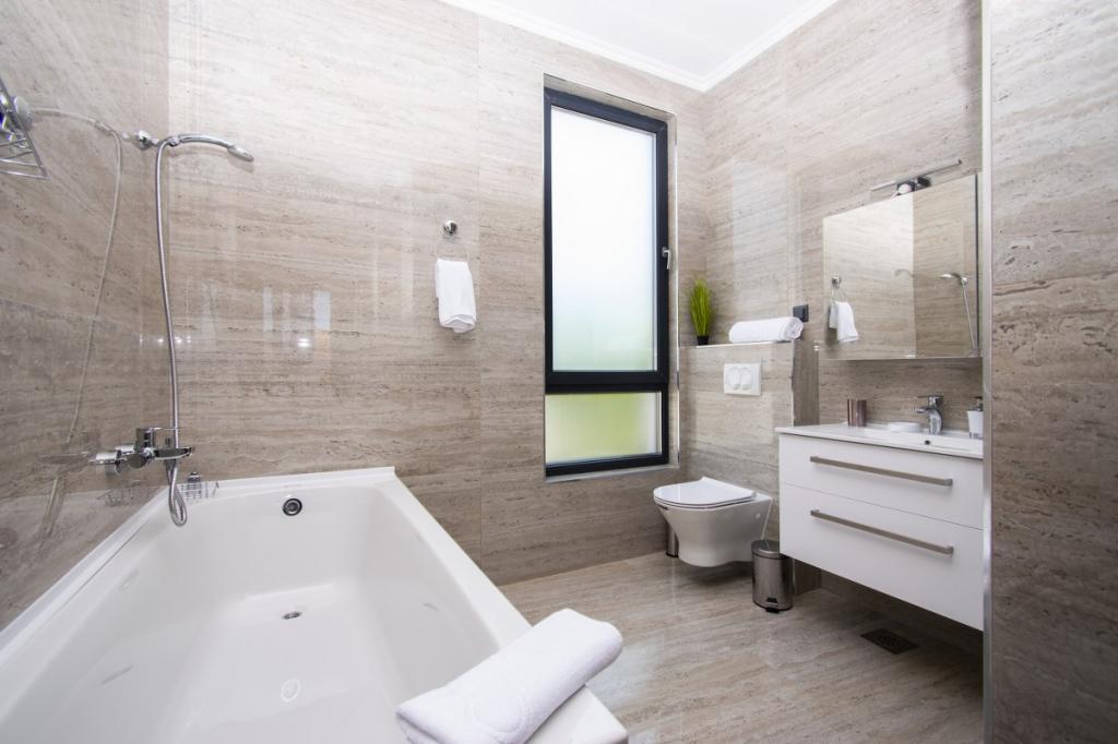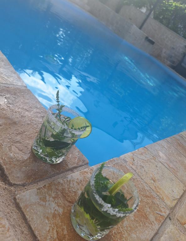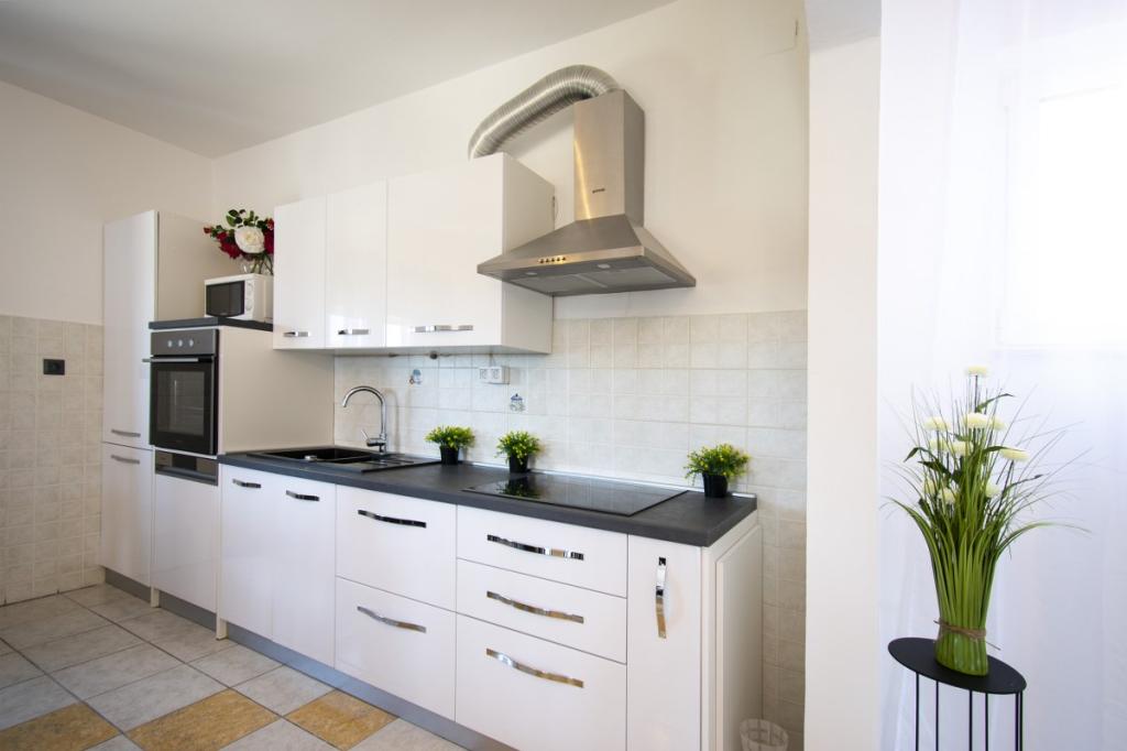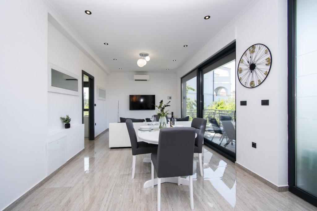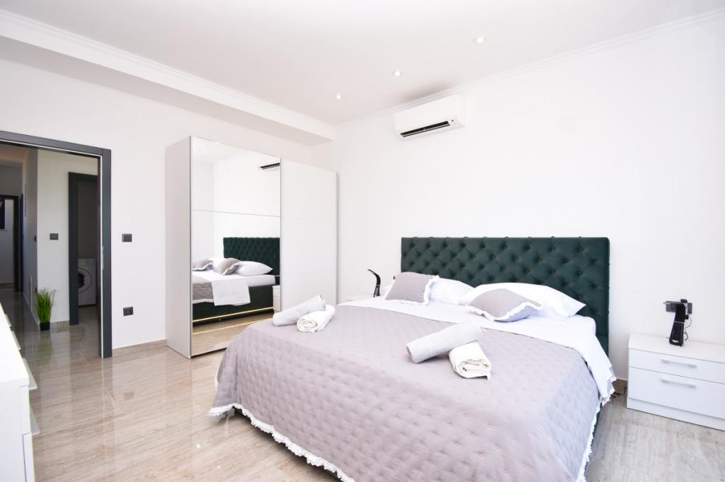 Hiša za 10 oseb z bazenom in jacuzzijem se nahaja v mirnem predelu Brodarice, obdana z veliko zelenja in cvetja. Prva dva apartmaja sta v pritličju, eno ima 45 m2, drugo pa 50 m2. Vsak apartma ima dvoposteljno sobo, kuhinjo, raztegljiv kavč, kopalnico in teraso z mizo in stoli. Tretji apartma meri 90 m2 in se nahaja v prvem nadstropju, ima dve veliki dvoposteljni sobi, veliko dnevno sobo, kuhinjo, kopalnico in 45 m2 veliko teraso z mizo in stoli. Primeren je za malo večjo družino in prijatelje. Apartma je klimatiziran. Četrti apartma je luksuzno urejen, cca 100m2, ima veliko dnevno sobo, popolnoma opremljeno kuhinjo, veliko sobo s televizijo in klimo, apartma ima tudi savno. na strehi je jacuzzi z veliko teraso. vsak apartma ima klimo in vsaka soba ima tudi televizijo. Bazen je skupen. Hiša je od morja oddaljena 5-6 minut hoje. Poleg hiše se nahajata še dva apartmaja, eden je 110m2 luksuzno opremljen, drugi pa 55m2.