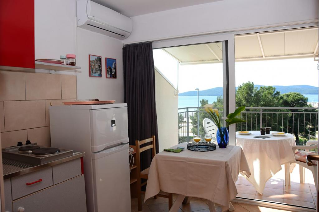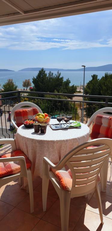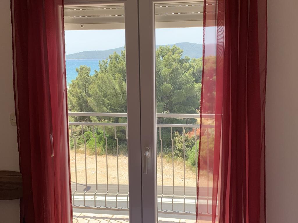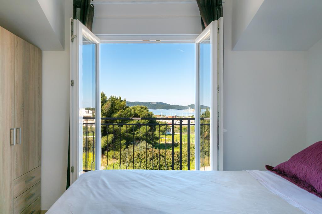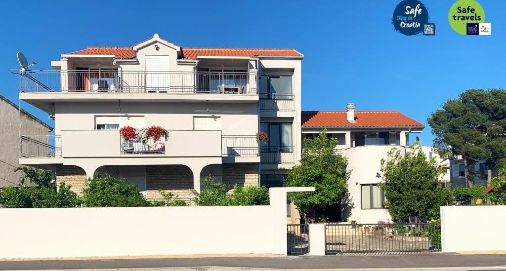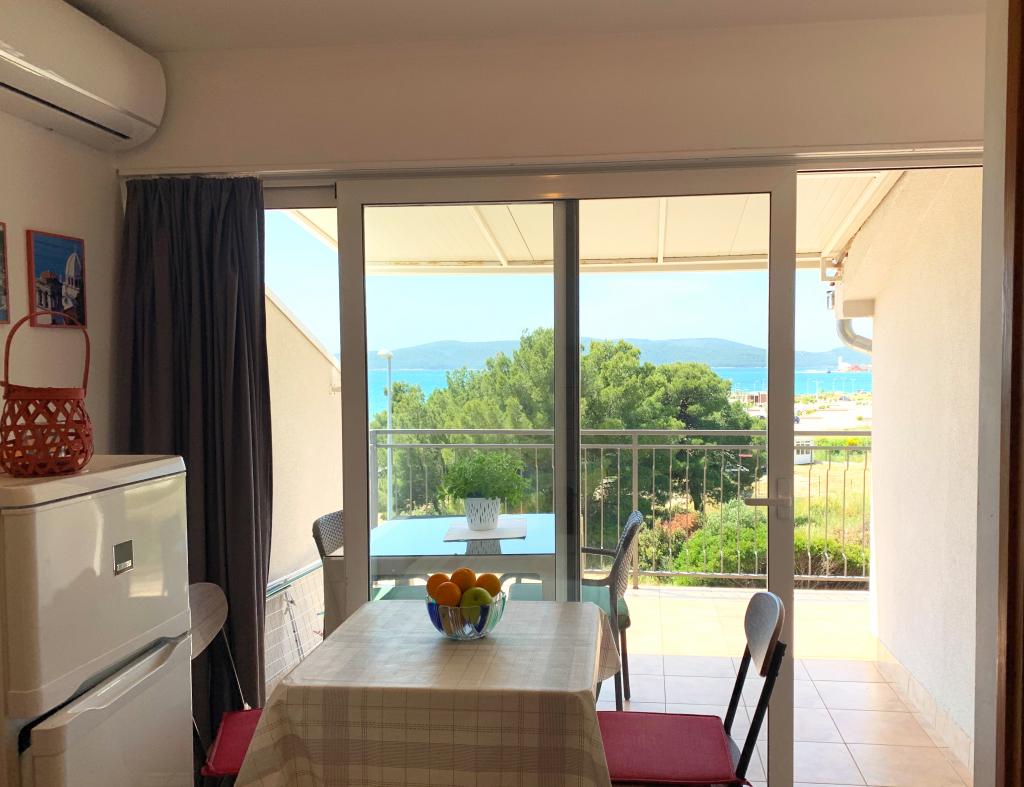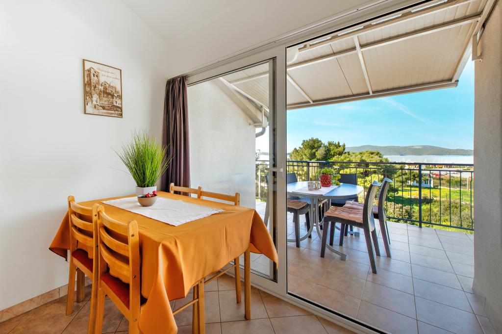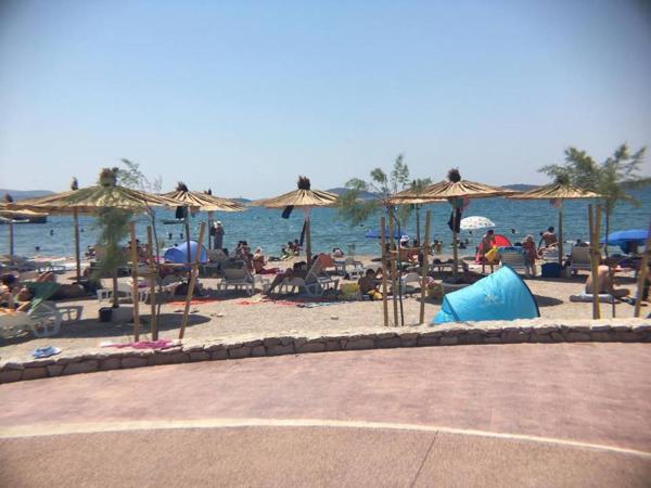 Apartma v lepem delu Brodarice. Pogled s terase na plažo. veliko parkirišče. Žar na dvorišču. poleg žara je tudi večerna miza v bližini vseh spremljajočih objektov. Solaris, Šibenik Narodni parki Krka in Kornati Oscilacijski centri, otroško igrišče