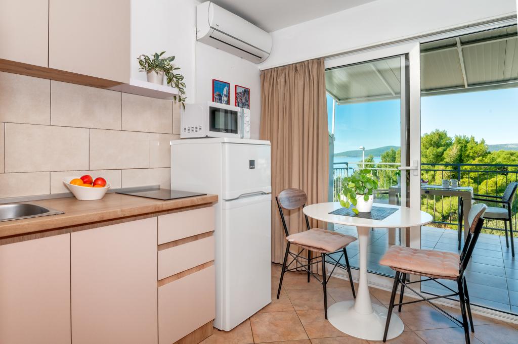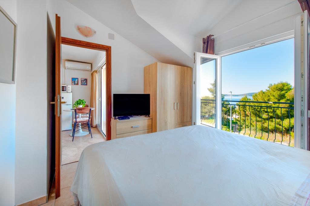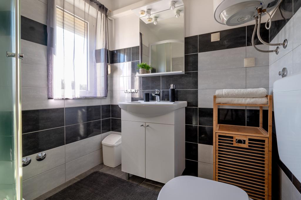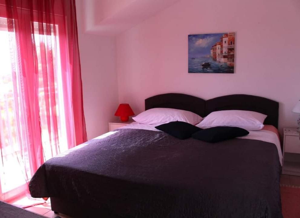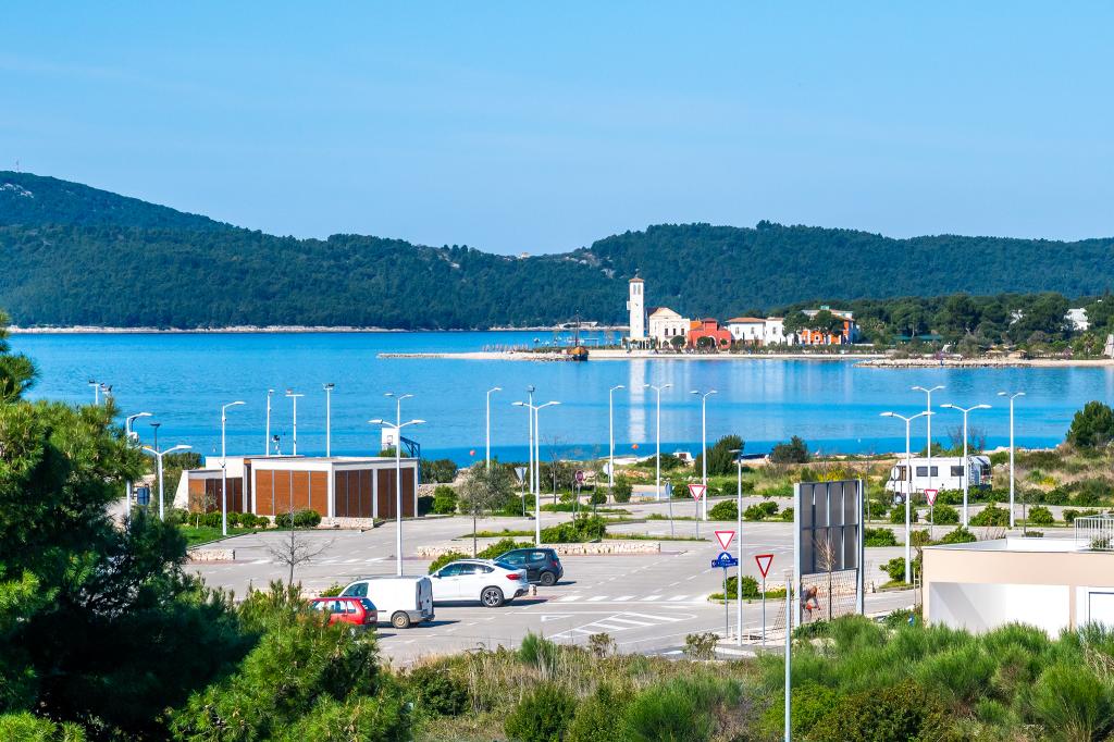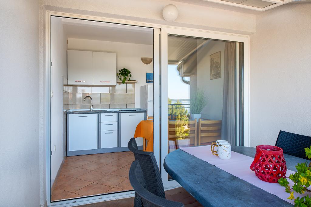 Apartma v lepem delu Brodarice. Pogled s terase na plažo. veliko parkirišče. Žar na dvorišču. poleg žara je tudi večerna miza v bližini vseh spremljajočih objektov. Solaris, Šibenik Narodni parki Krka in Kornati Oscilacijski centri, otroško igrišče