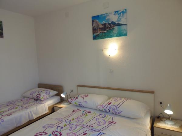 Odličen apartma, opremljen z vsem, kar potrebujete za udoben oddih. Celo parkirišče je pokrito z zaščito pred soncem. Nahaja se na mirnem območju. Domačini so zelo prijazni. Vse pohvale za apartmaje Milka Brodarica.