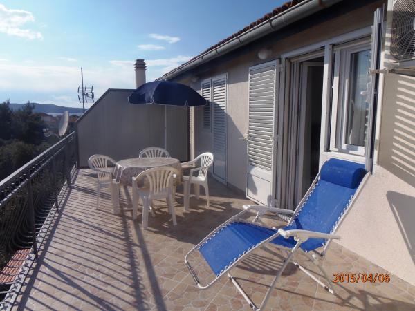 Apartmaji se nahajajo na obali Jadranskega morja, na mirni lokaciji v Brodarica blizu Šibenika. Nahajajo se 500 metrov od plaže. V mirnem delu Brodarice so aparmani v 2. nadstropju hiše, in en apartma v pritličju. Parkiranje je brezplačno v hiši, z uporabo ponve.