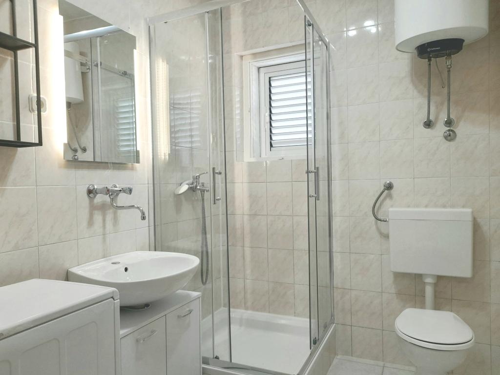 Z vsem srcem priporočam to stanovanje. Zelo udobno, čisto, moderno, za družino z otroki. Vse potrebno je bilo na voljo. Poleg tega je velika terasa, kjer se lahko sprostite, igrate ali jeste v senci. Samo 3 minute do morja, prehod pod glavnim cestnim tunelom, zato zelo udobno in varno. Betonska in prodnata plaža, tako imenovana ponev. Globina za skakanje na glavo pa tudi nežen spust v vodo za majhne otroke. Brez sence. Dobro je vzeti šotor ali dežnik. V bližini hiše trgovina Konzum, kjer se da kupiti vse za jest. Normalne cene. In gostitelji so izjemno prijazni in gostoljubni ljudje! Hvala za čudovit čas. Priporočamo 100%.
