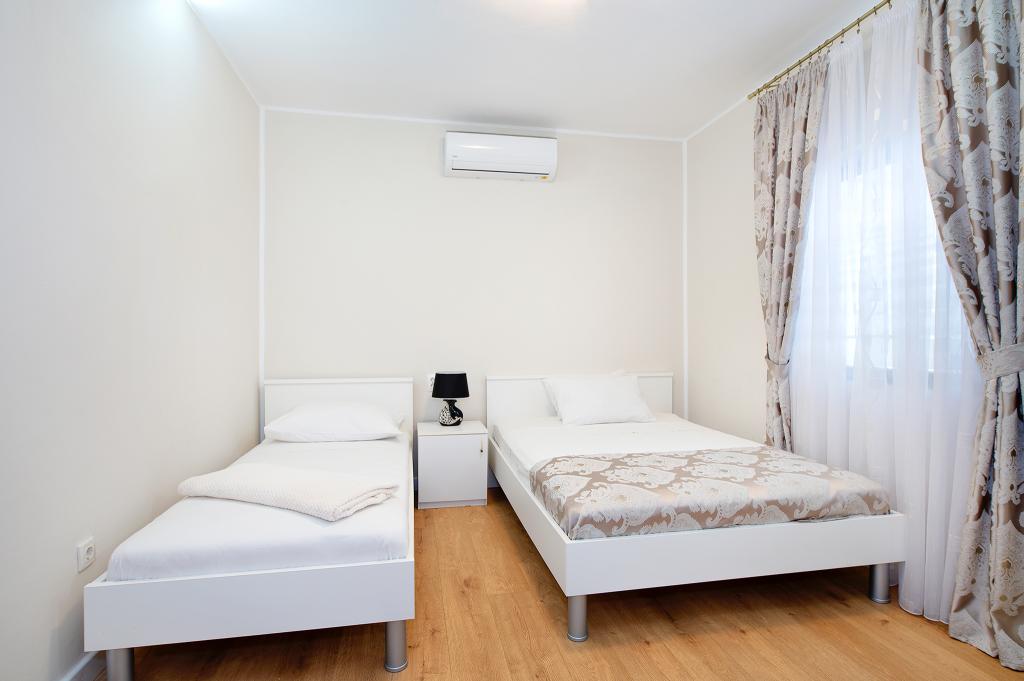 Lepi udobni apartmaji. Klimatizirano in opremljeno z vsem, kar potrebujete za prijeten in brezskrben oddih. Ob stanovanju je čudovita trata. Do plaže 3-4 minute hoje. Plaža polna aktivnosti za otroke in odrasle.