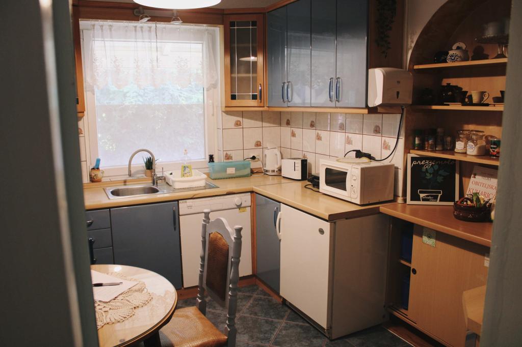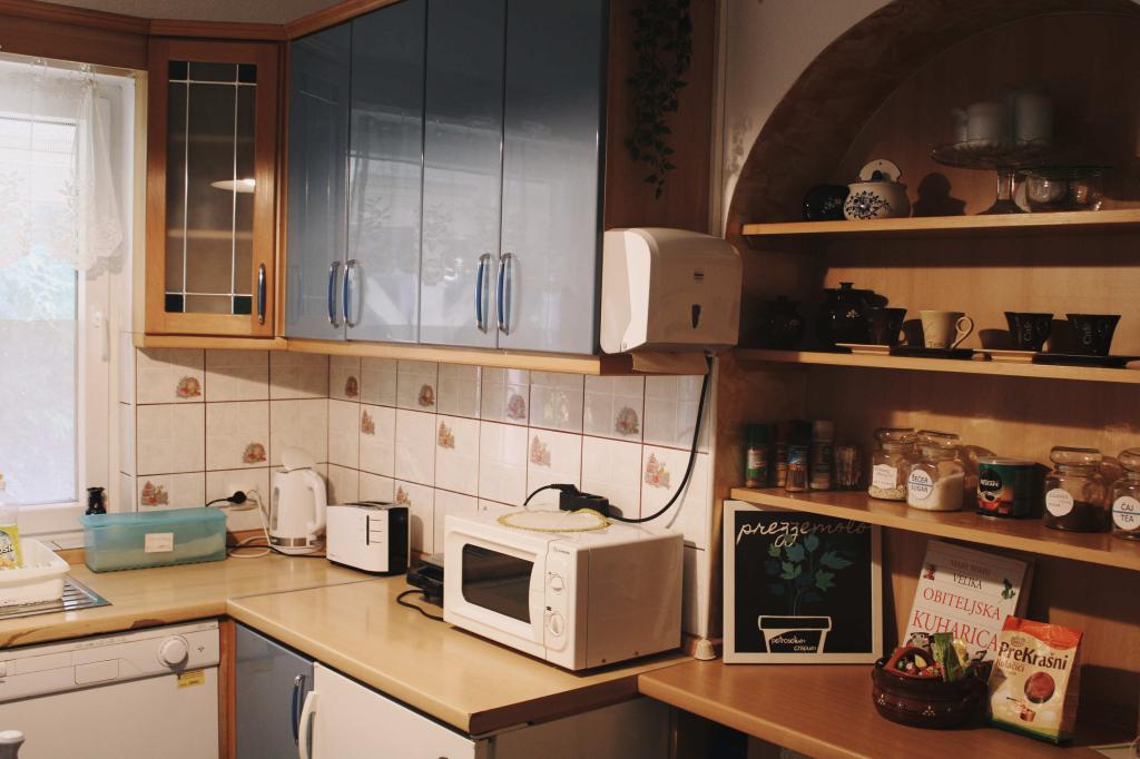 Kuhinja je popolnoma opremljena z vsemi gospodinjskimi aparati, na voljo pa so tudi osnovne začimbe, kava in čaj, pričakala pa vas bo pijača dobrodošlice ali domač pridelek iz lastnega vrta. Zunanji žar je popolnoma opremljen za peko na žaru. Dvorišče ima opremo za zabavo in rekreacijo otrok, stanovanje pa omaro z igrali.