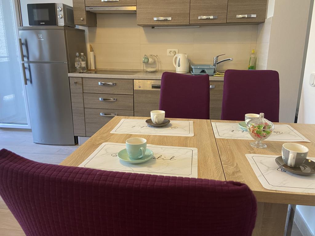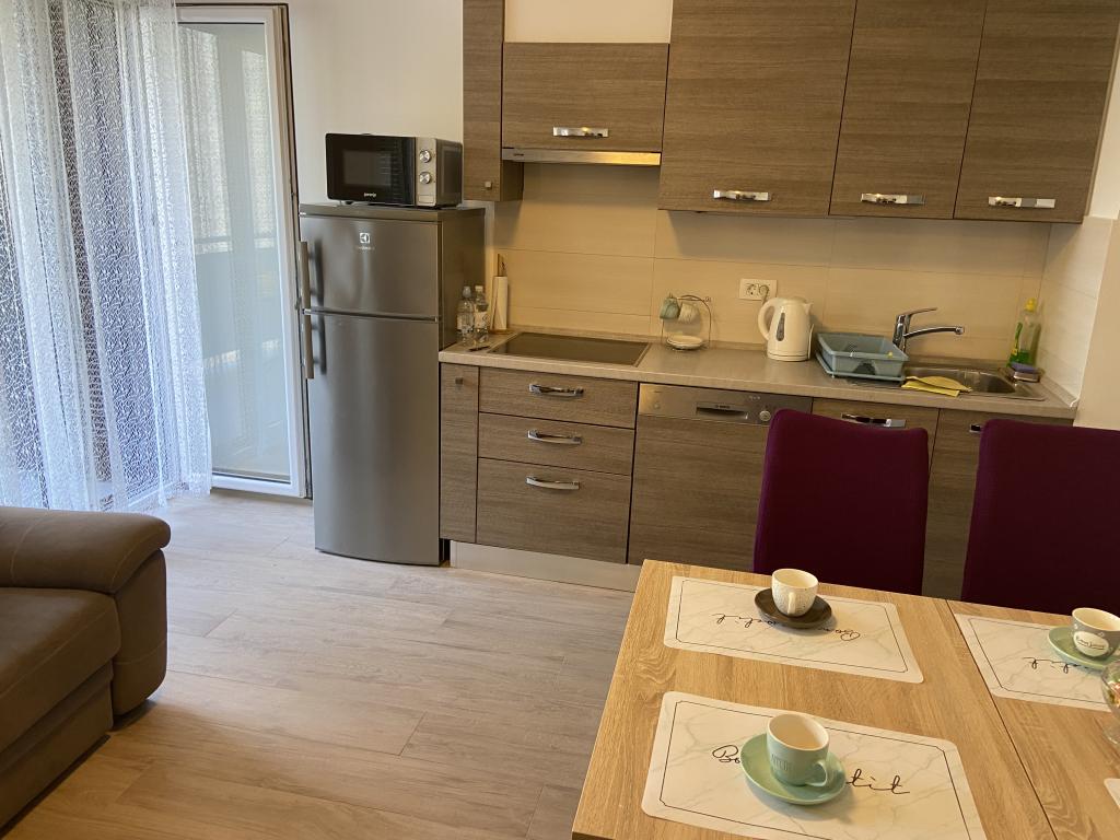 Apartma je urejen in dobro opremljen. Ima dve spalnici in dnevno sobo 2023. je popolnoma prenovljen (novi tlaki, nova kopalnica)