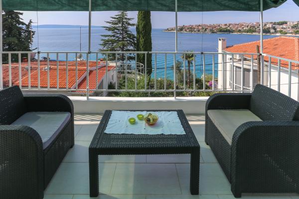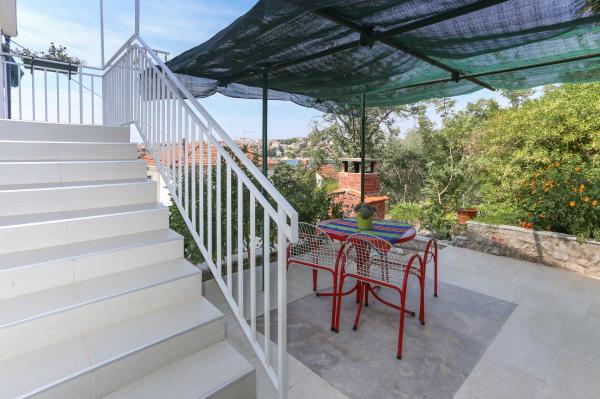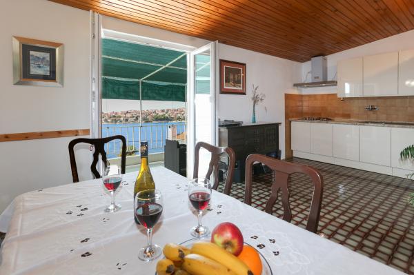 Apartma je na novo urejen in popolnoma opremljen ter je edini za najem v objektu. Nahaja se v 1. nadstropju s teraso velikosti 18 m2, s čudovitim razgledom na otok Šolta in morje, ki je oddaljeno 30 m. Apartma se nahaja v mirnem in zelenem okolju. Ni prometa nobenih vozil ali pešcev. V okolju živijo ptice, njihovo petje pa lahko slišite od jutra do večera. Plaža je od apartmaja oddaljena 150 metrov oziroma približno 3 minute hoje. Plaže so raznolike, od skalnatih, betonskih, prodnatih do peščenih. Objekt je oddaljen 50 km od Narodnega parka Krka in Šibenika ter 30 km od Splita. Pridobili smo status LOKALNEGA GOSTITELJA.