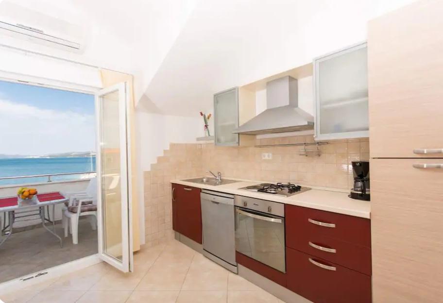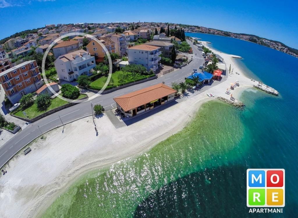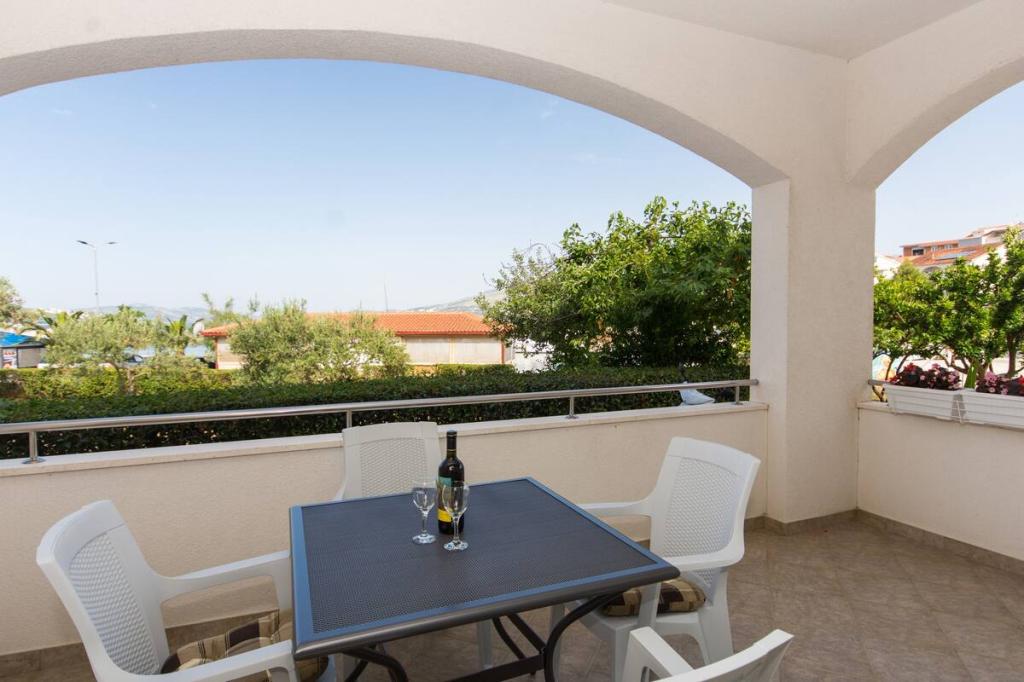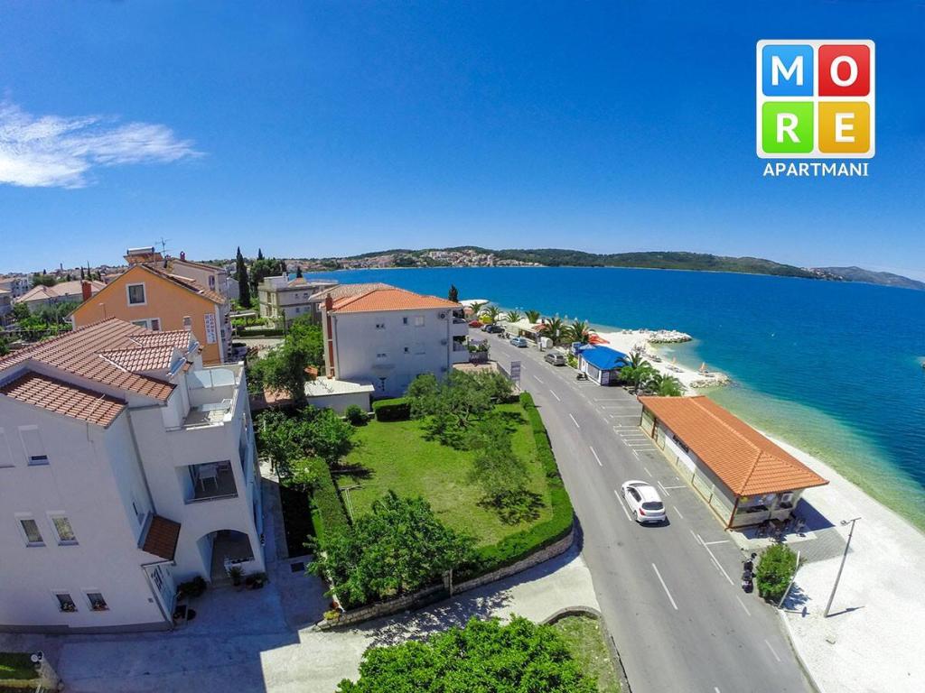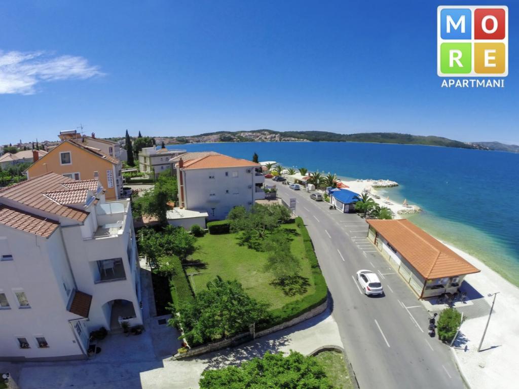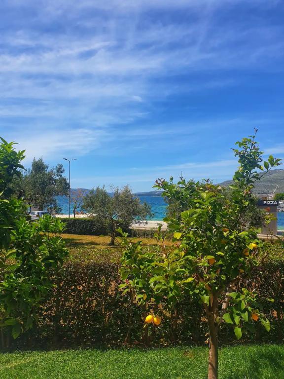 Apartma je le 10m od morja in glavne plaže v Okrugu Gornjem. V bližini je supermarket, restavracija, kavarna in številne druge storitve. Prav tako je zelo blizu centra Trogirja, kot tudi marine, avtobusne postaje in letališča.
