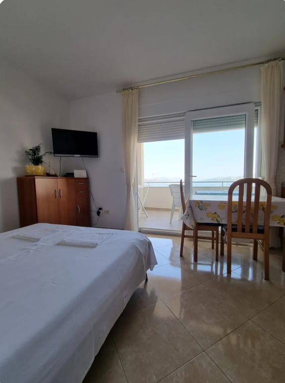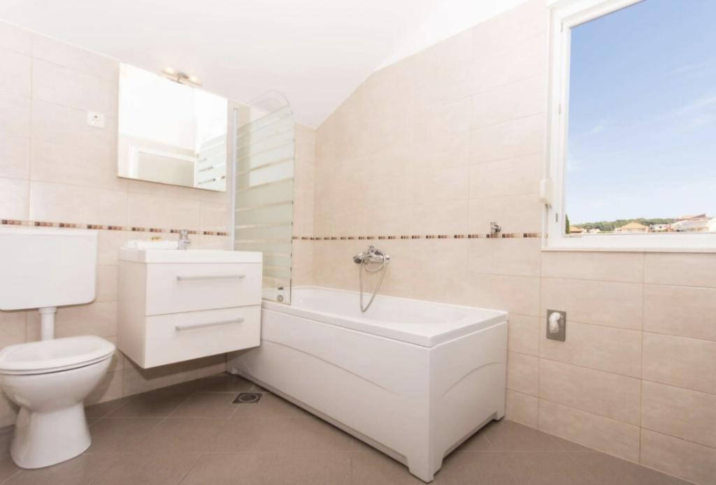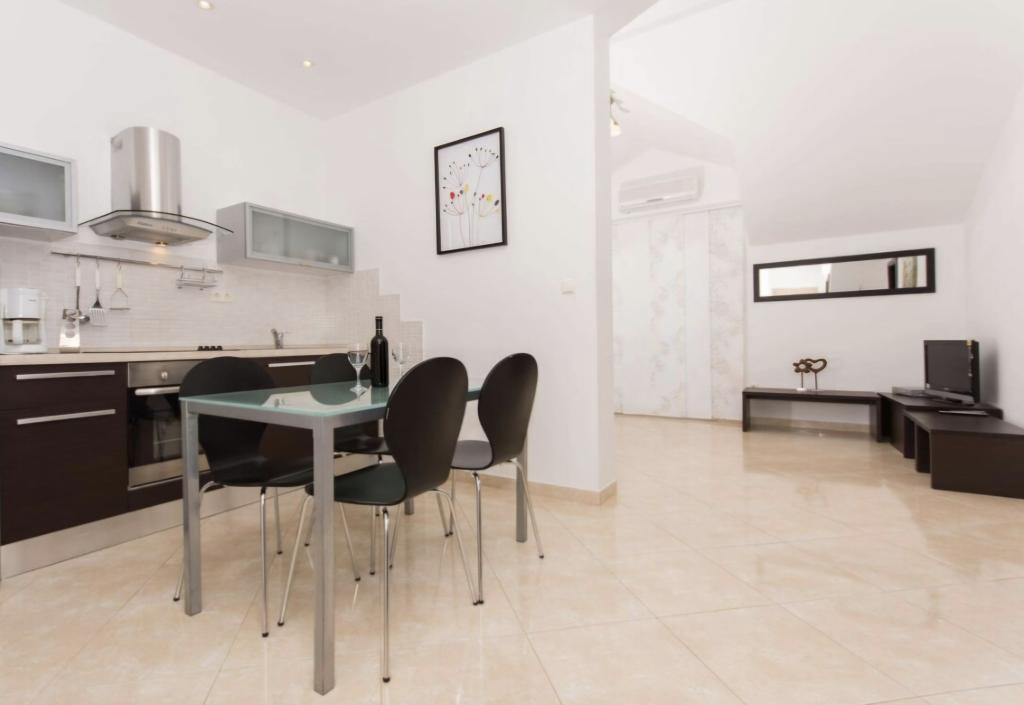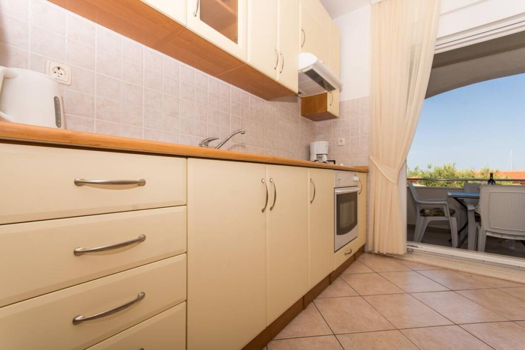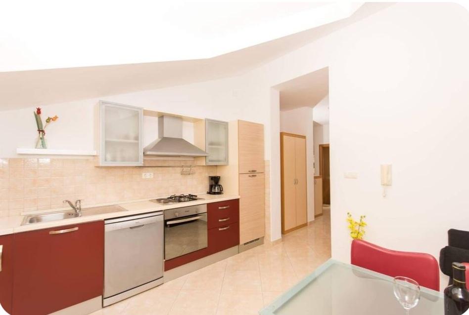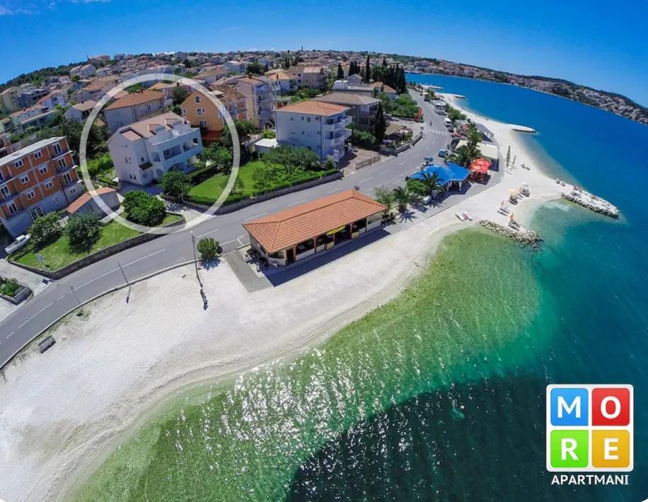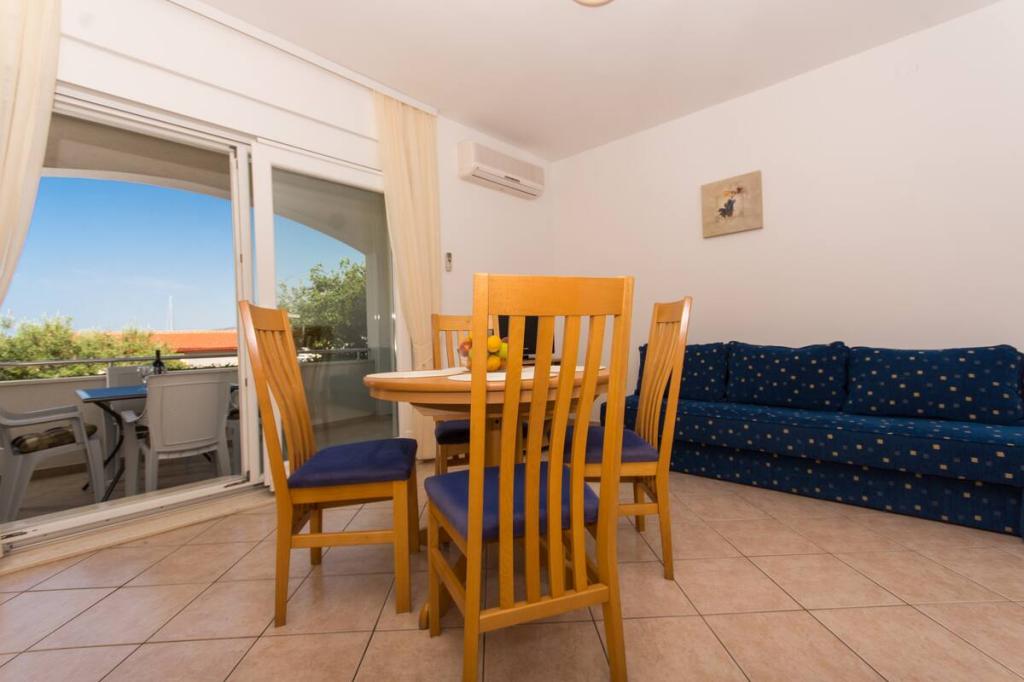 Apartma je le 10m od morja in glavne plaže v Okrugu Gornjem. V bližini je supermarket, restavracija, kavarna in številne druge storitve. Prav tako je zelo blizu centra Trogirja, kot tudi marine, avtobusne postaje in letališča.