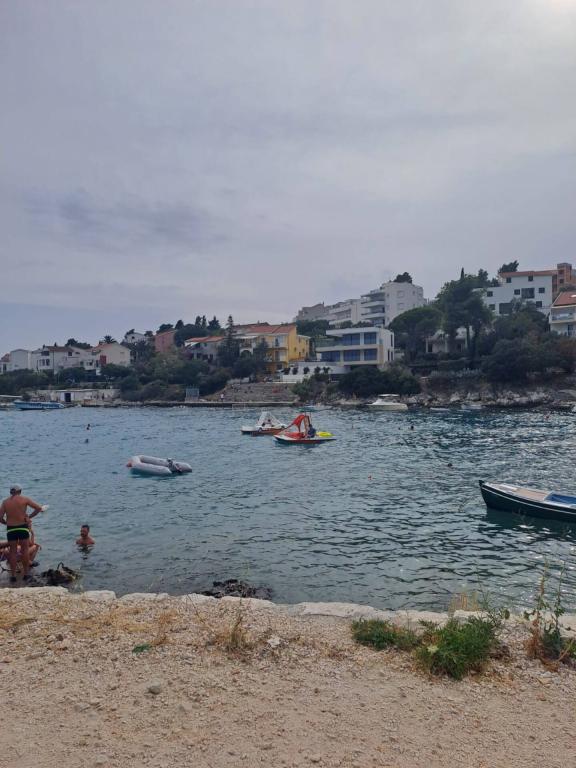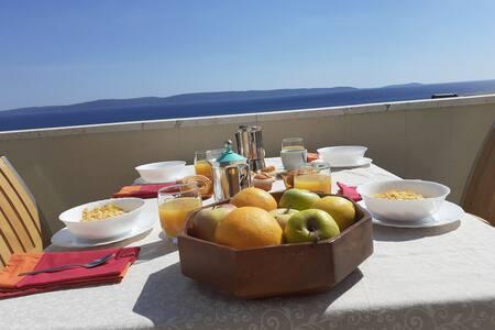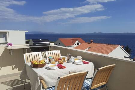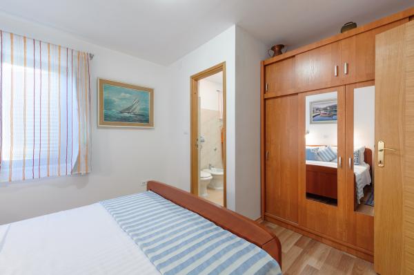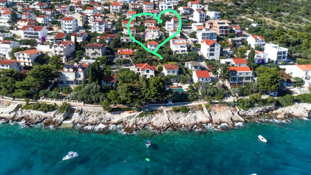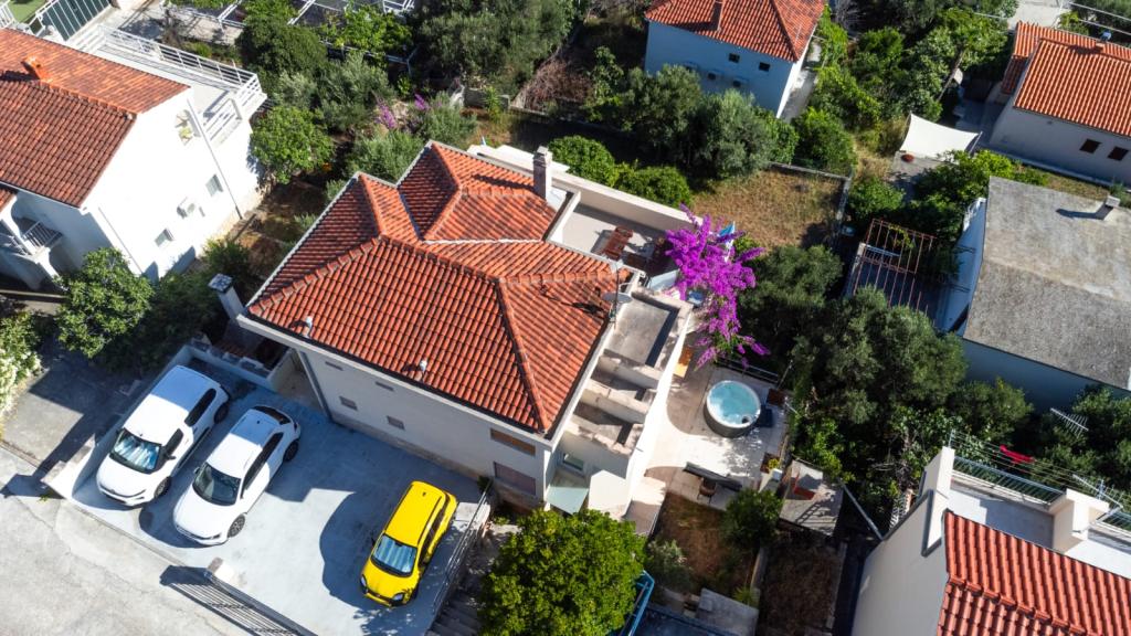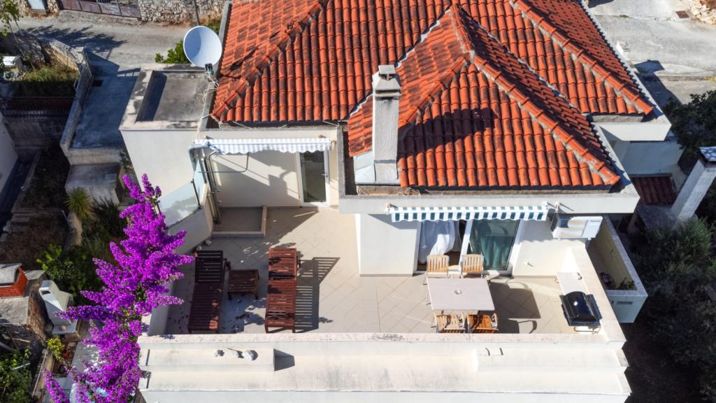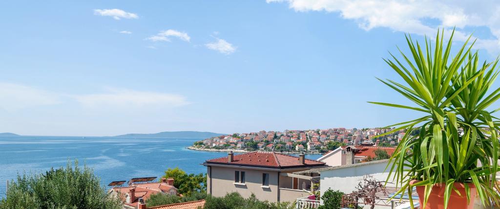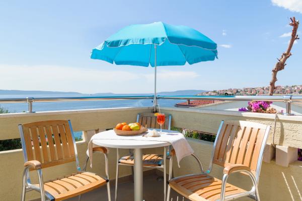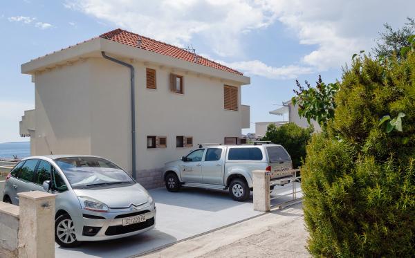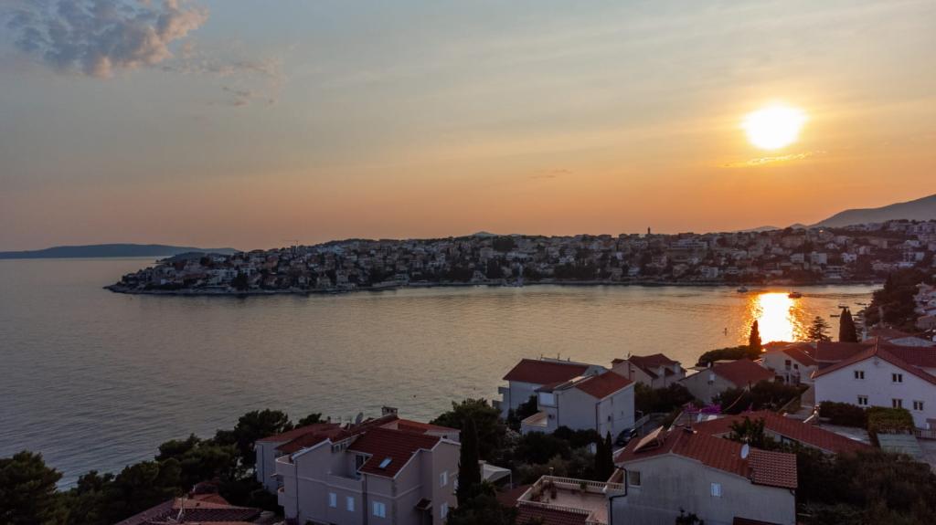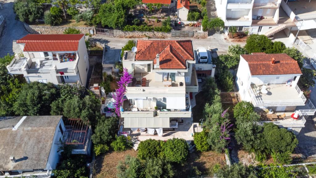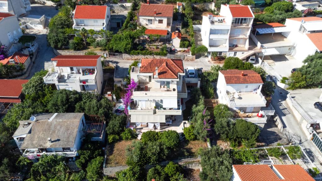 V neposredni bližini morja in borovega gozda, na južni strani otoka Čiovo, dva apartmaja v prvem nadstropju družinske hiše, s pogledom na otoke Brač, Hvar, Šolto, Drvenik in neskončnost. Oba stanovanja sta zračna, orientirana na jug in vzhod (Levante) ter zahod (Ponente), opremljena s kvalitetnimi materiali in aparati. Spalnica esencialnih linij, s posteljo dimenzij 160x200 cm, prvovrstno vzmetnico in nadvložkom polnjenim s spominsko peno ter seveda dobro izbrano posteljnino, bo zagotovilo vaše udobje. Kopalnica je opremljena tako, da zagotovo ne boste ničesar zamudili. Dodatni sprostitvi bo zagotovo pripomogla udobna dnevna soba s sedežno garnituro (z možnostjo raztegljivosti), TV 40\\ in kuhinja, kjer lahko shranite svoje najljubše recepte. Balkon za jutranjo kavo in večerni aperitiv, možnost uporabe skupnega žara, vrtna miza in zunanji tuš bodo zagotovo zagotovilo za vaše dobro poletno razpoloženje. Tukaj smo, od nas vas loči le en klik!