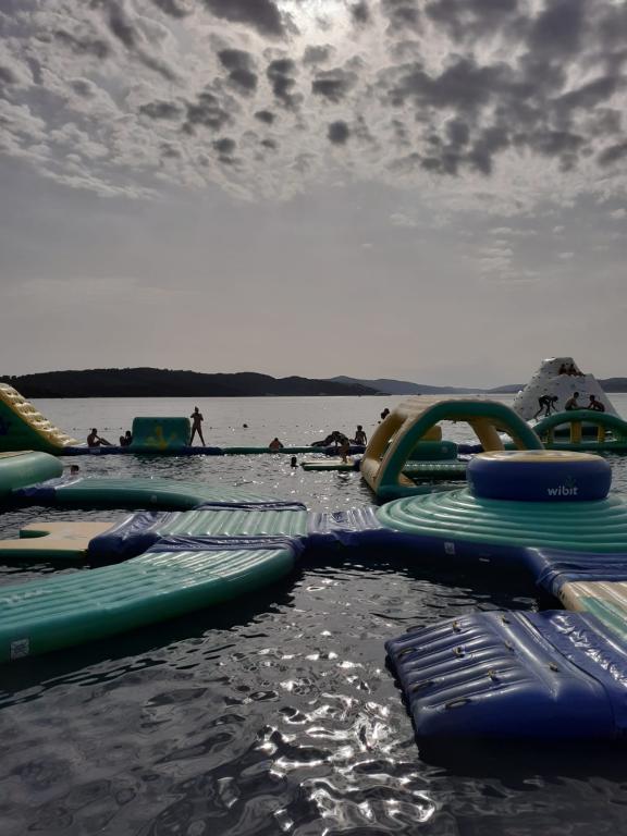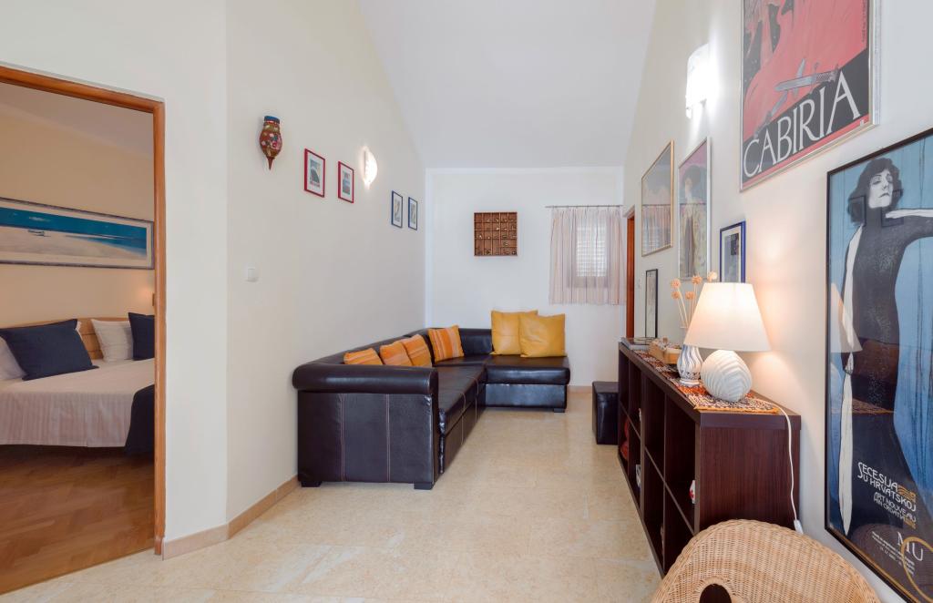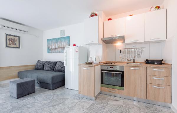 Turistična taksa je vključena v ceno. Dokument o potrditvi rezervacije ob rezervacijiHrvaški jadranski biser impresivne zgodovine, mesto Trogir, ki je na Unescovem seznamu svetovne dediščine, je le 5 kilometrov od vas. Po drugi strani pa je Split, do katerega lahko pridete z avtom ali čolnom, oddaljen le 20 km. To Dioklecijanovo mesto sega v 4. stoletje našega štetja, od leta 1979 pa je pod Unescovo zaščito, kar je edinstven primer v svetu. Lepota sedmih travertinskih slapov, naravnega in kraškega fenomena Narodnega parka Krka (50 km), vam bo zagotovo ostala v lepem spominu. Številni operaterji na otoku ponujajo izlete na bližnje otoke in lagune. V bližini je tudi šola potapljanja. V neposredni bližini našega apartmaja, potopljena v borov gozd, se nahaja čudovita Bela plaža (Vela Draga).