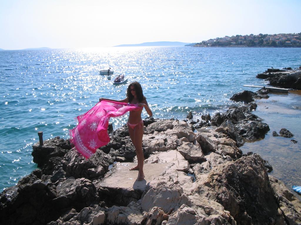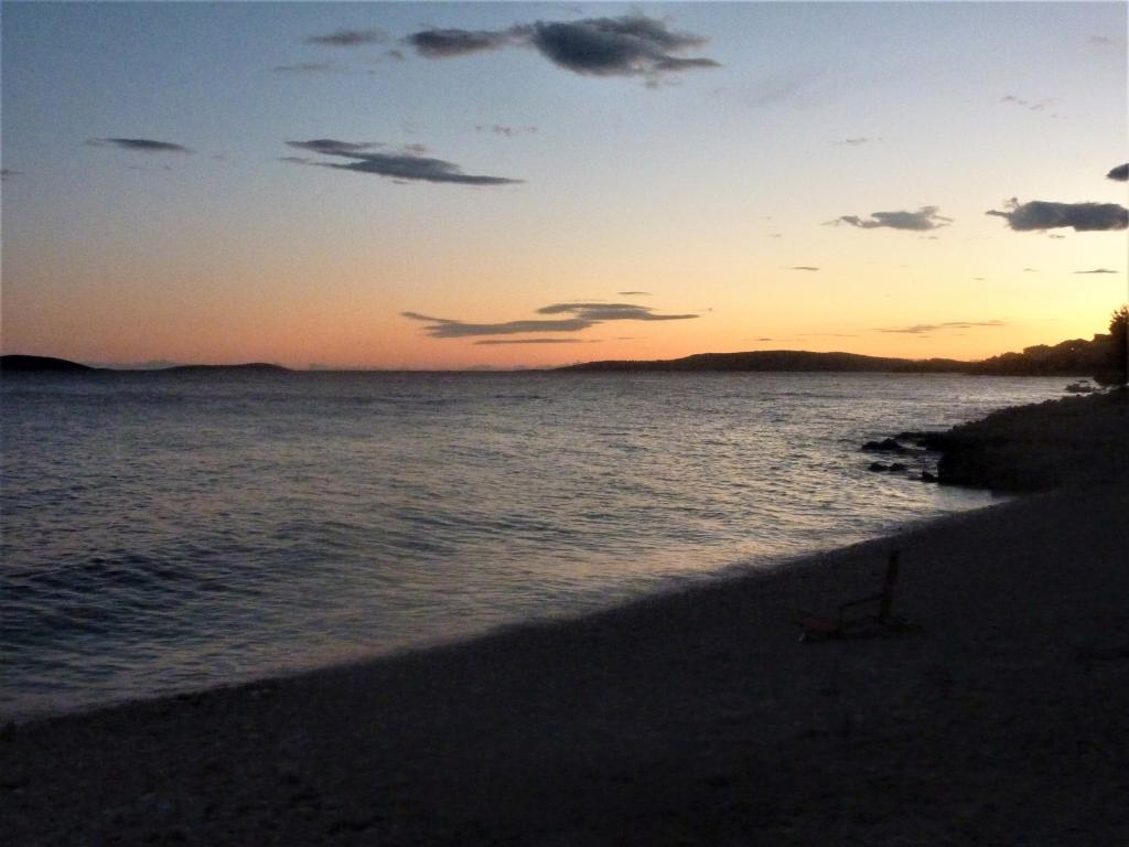 Teden dni smo preživeli pri gospe Nini v apartmajih Levant - Čiovo Okrug Gornji - Hrvaški otoki; apartma A2+2. Apartma je lepo opremljen z osnovno kuhinjsko opremo, bil je tudi lepo pripravljen in čist. Razgled z balkona je čudovit. Gospa Nina je v kopalnici in v kuhinji gostom na voljo dala osnovno kozmetiko (šampon, tuš gel ...) in v kuhinji stvari, kot so olje, kis ... Plaža je blizu in zelo lepa z več kot dovolj sence med borovci v vsakem delu dneva. Le en zelo strm klanec je treba premagati, ko se vračaš v apartma, ampak takoj na vrhu klanca si že na cilju. Voda/morje je čudovito, zelo čisto, vidi se do dna, tudi ko plavaš daleč. Kraj je zelo miren, na voljo je le ena mala gostilnica/fast food s preprosto hrano (pice, ribe, hamburger, pomfri, solata). Je pa Trogir blizu, le kakih 15 minut vožnje. Tak dopust zelo priporočam paru brez otrok, ki ima rad mir in romantiko, tudi družini, ki ima več otrok, ki se igrajo med sabo. Če pa imate le enega in to takega, ki potrebuje družbo enako nujno kot riba vodo, potem bo verjetno precej osamljen in siten. Tudi otroškega igrišča ni nobenega tam. Skratka: lep apartma, lep kraj, ali je pravi za vas, pa je odvisno od vaših potreb.