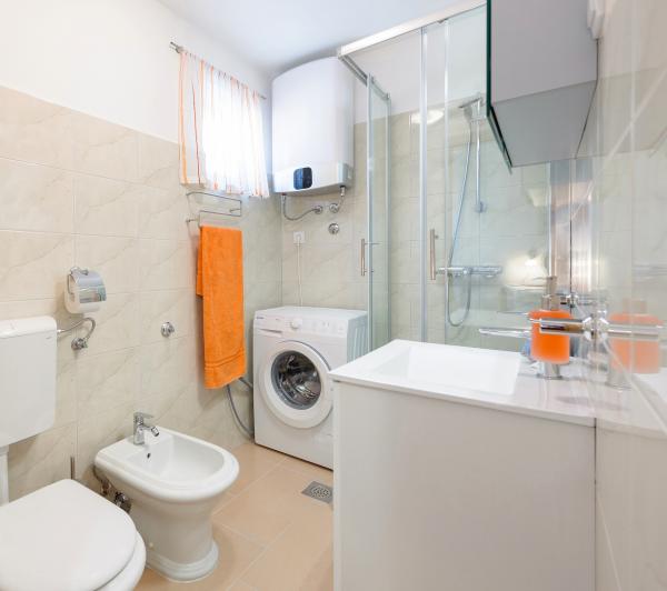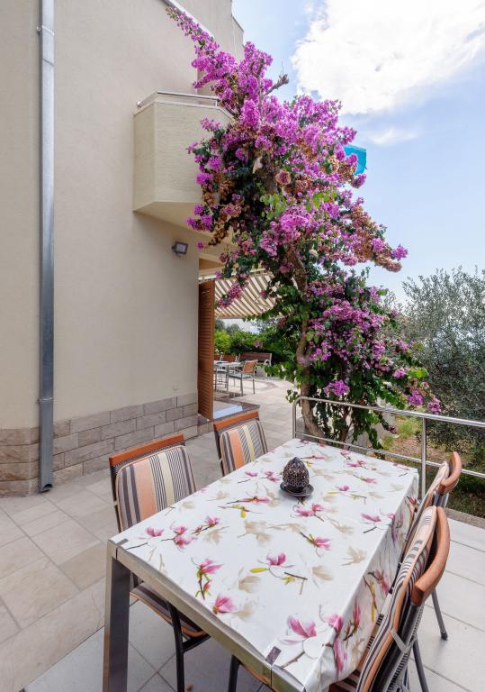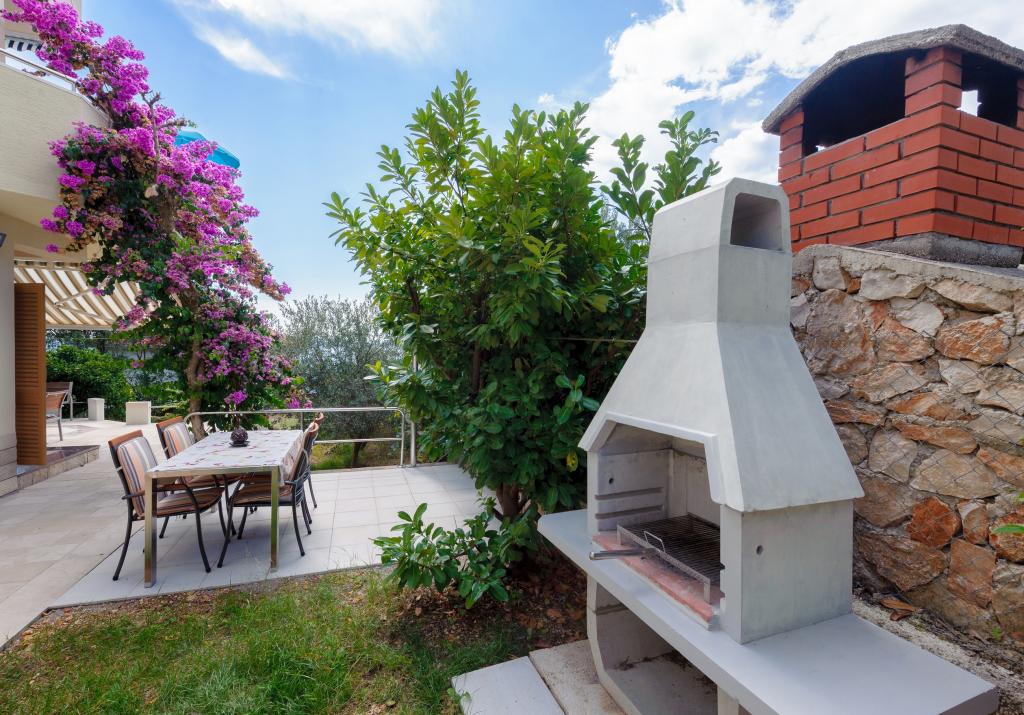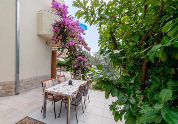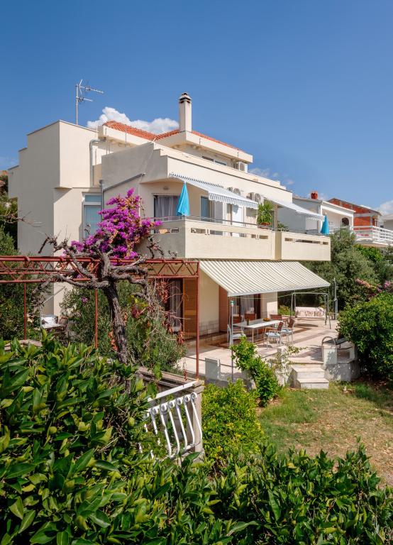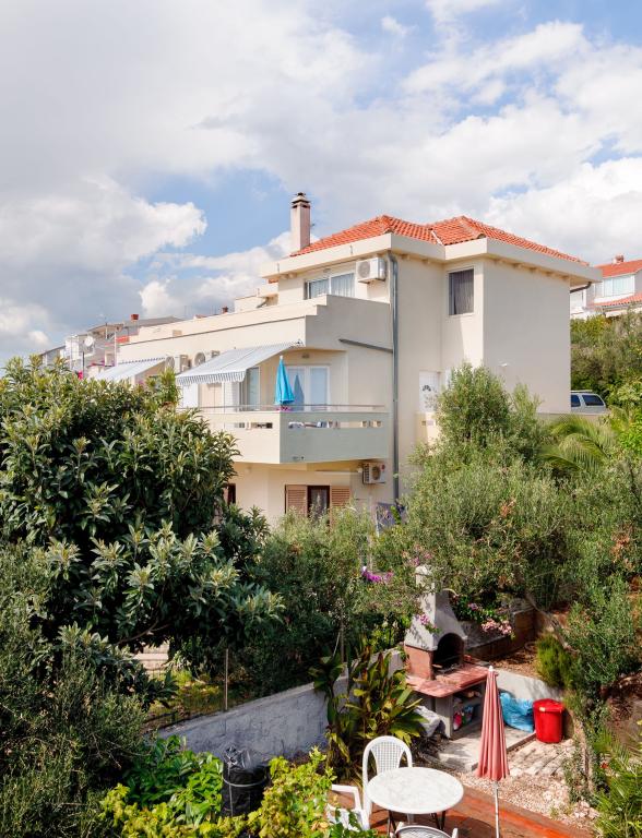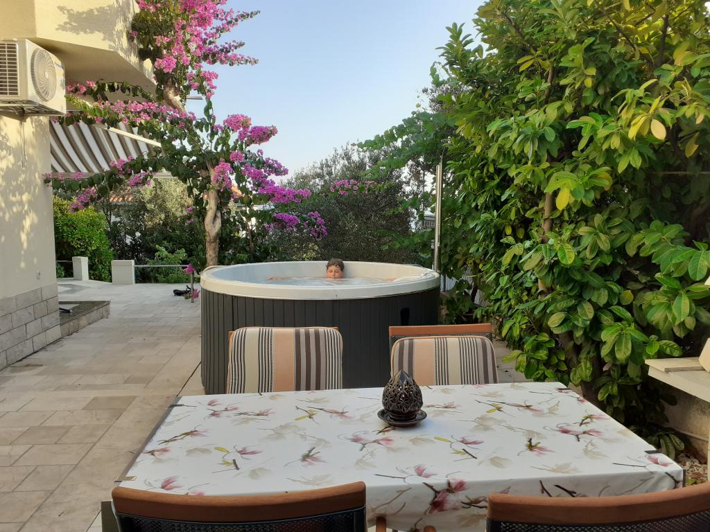 V velikem stanovanju v drugem nadstropju, kjer sta bila dva odrasla in dva najstnika, smo bivali en teden junija. Vse je bilo odlično: vreme, morje, hiša, predvsem pa naša najdražja Nina, prijazna, prijazna, ustrežljiva, vedno pripravljena pomagati, dati napotke in predloge, ponuditi pijačo. Apartma je lep, zelo čist, udoben, opremljen z vsem, kar potrebujete za družinske počitnice; res smo se počutili kot doma, pravzaprav veliko bolje! Postelje so zelo udobne in blazine so čudovite! Tako dobro smo spali in se spočili!! Kuhinja je dobro opremljena, kopalnica ima tuš in tudi pralni stroj in je zelo prijetna, najbolj pa nam je bila morda všeč velika terasa, kjer ste lahko jedli, spili aperitiv, se celo stuširali med gledanjem. morje in otoki pred vami ali fantastičen in nepozaben sončni zahod! Oči smo napolnili z izjemno lepoto! Vsem gostom je na voljo tudi jacuzzi kad na vrtu in žar. Ninin oče, veliki Leo, nam je ponudil super mega dobro večerjo in super višnjevac (črni češnjev liker, ki ga dela on). Morje je zelo blizu, prve plaže so oddaljene 100 metrov, lahko greste peš, morje je ČUDOVITO, barve zelene, modre, turkizne, omamni vonj obmorskih borovcev, pesem neumornih škržatov. Ljudi ni veliko (vsaj junija ne), zato je sprostitev popolna! Plaže so skalnate (odlične za potapljanje) in priporočljiva je uporaba morskih čevljev (ali celo belih kamenčkov - zelo bližnja in znana plaža Vela Draga). Obvezen je tudi obisk Trogirja (5 km) in Splita (25 km). Vse je bilo tako lepo, da kar nismo želeli oditi in bi se radi vrnili tudi naslednje leto. Hvala, Nina, za vse!