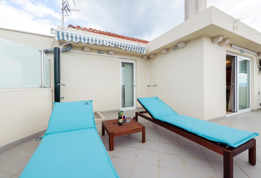 Zelo moderen in čist apartma z veliko strešno teraso in čudovitim pogledom na morje. Še en vrhunec je bila uporaba masažne kadi in zunanje prhe! Zelo mirno in se nahaja tik ob plaži!