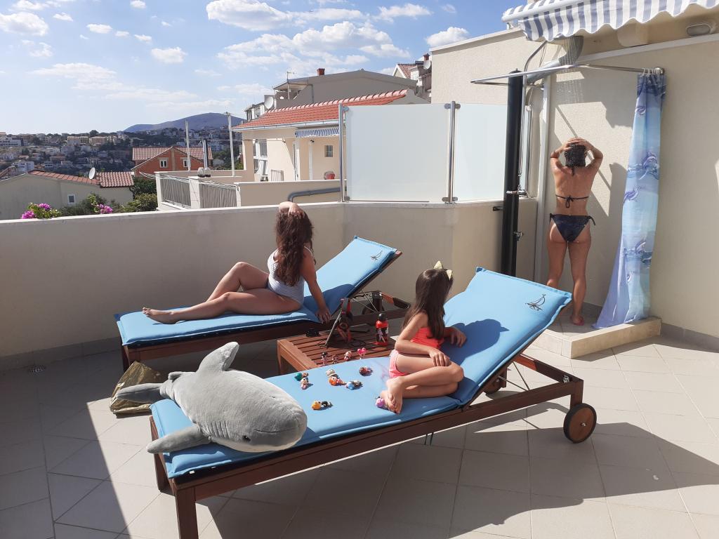 Najlepša hvala vam za čudoviti dopust, ki si ga bomo zapomnili, zelo ste gostoljubni, prijazni, naredite vse, da se vaš gost res odlično počuti. Apartma je velik, lep, očiščen, lepo opremljen. Pogled s terase je prečudovit! Do plaže je blizu, lepo urejena. Čiovo je lepo, Trogir prekrasen; možnost izletov... Lep pozdrav, Patricija z družino