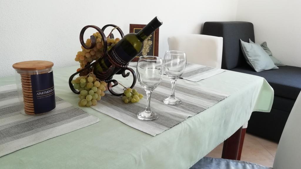 Apartma je lepo urejen, čist in ima lepo veliko teraso. Lastniki apartmajev so prijazni, ustrežljivi, vse pohvale. Nedaleč od apartmaja so majhni zalivčki, lepe plaže, čisto, modro-zeleno morje. Vsekakor priporočam!