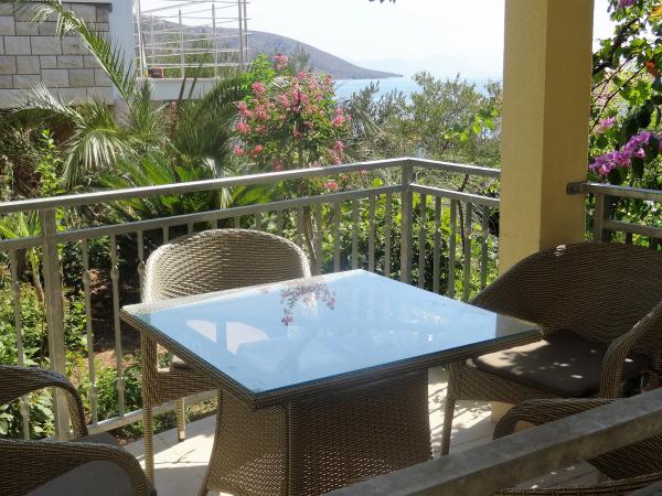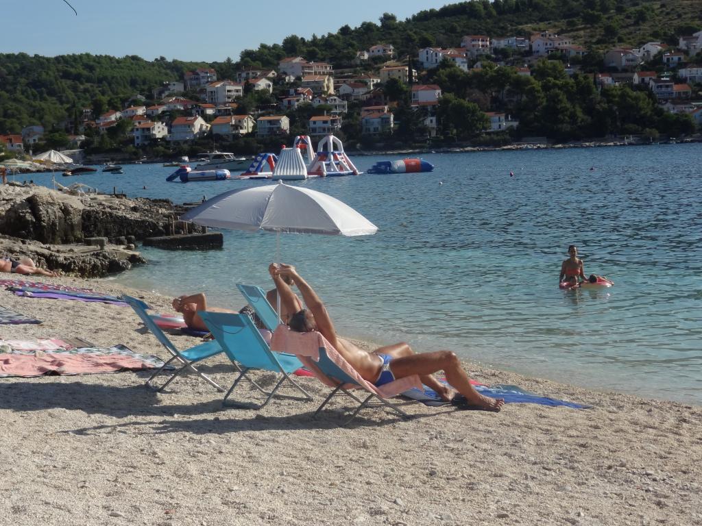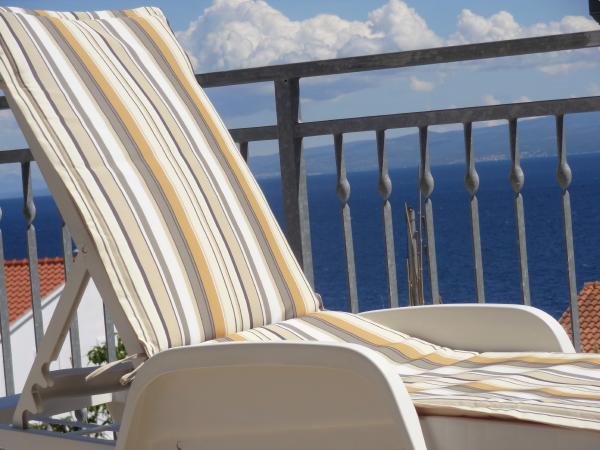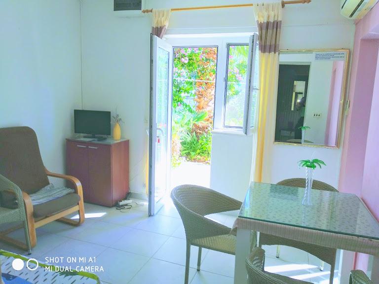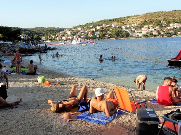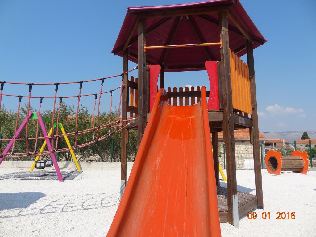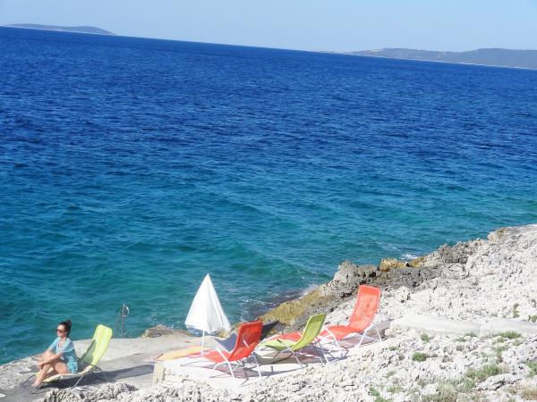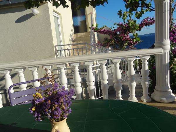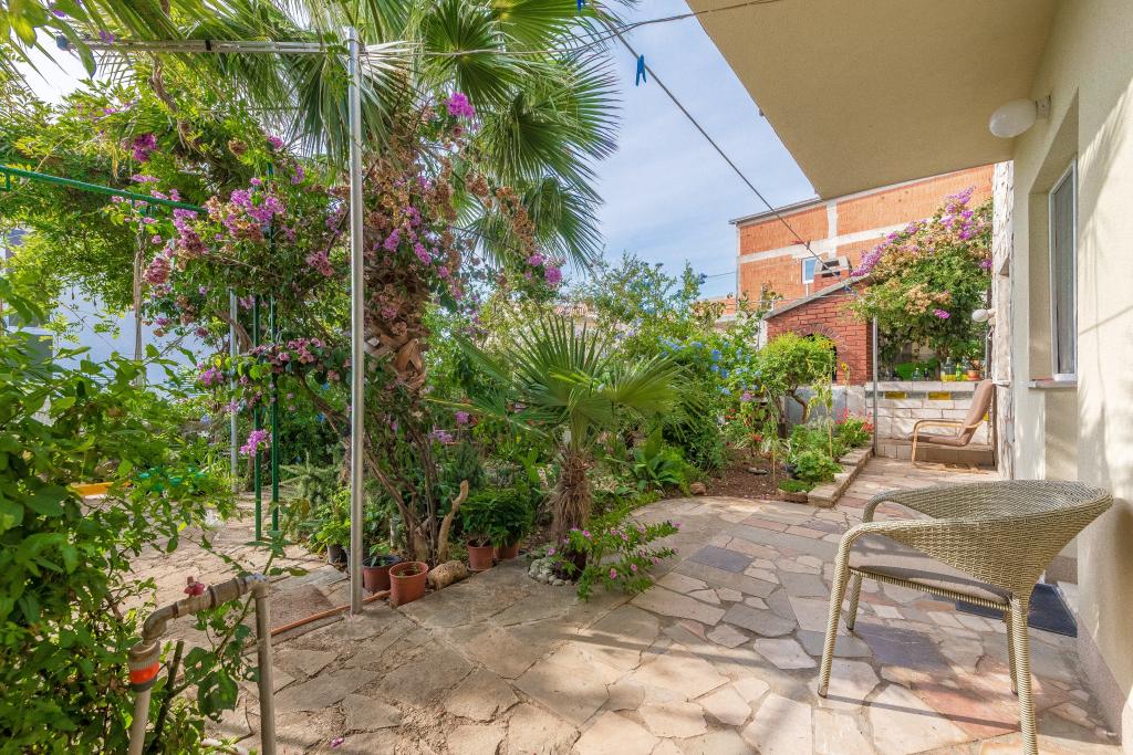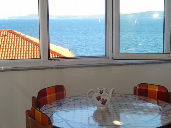 Hiša je na 3 nivojih. Vsako nadstropje ima svoj vhod, parkirišče in balkon z mizo in stoli. Stanovanje št. 1 (prvo nadstropje), ima eno sobo z zakonsko posteljo in dnevno sobo z zakonsko posteljo na klik klak. Stanovanje št. 2 (drugo nadstropje) ima sobo z zakonsko posteljo in dnevno sobo (zasebna soba) z luksuzno kavčem (160x 200) za dve osebi, plus blagavona. Ap ni. 3 je na ima tretje nadstropje zakonsko posteljo in. Dnevna soba (zasebna soba) z luksuzno kavčem (160 X200) za dva plus jedilnico. Morje in najbližja plaža je natanko 70 metrov. Hiša ima pogled na odprto morje in otoke. Peš lahko pridete do trga za 3 minute, 5 minut restavracije, cerkve, trgovine, tržnice, banke in zdravniki jih je mogoče doseči v 15 minutah. Aeodrom je udaljen10 kilometrov. Apartmaji so dobro opremljeni. Nahajajo se 60 metrov do plaže, na mirni južni sončni strani Čiovo. Ob ugodni ceni in z bogato kulturno zabavo preživeti počitnice .