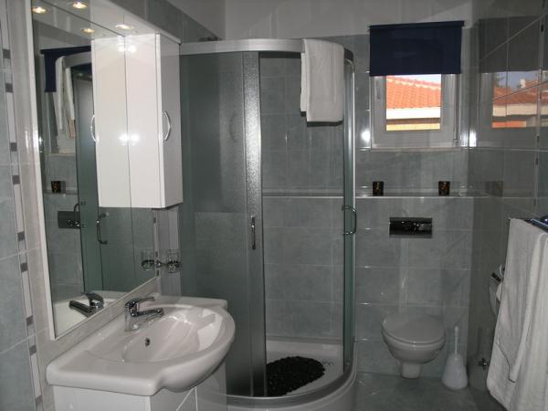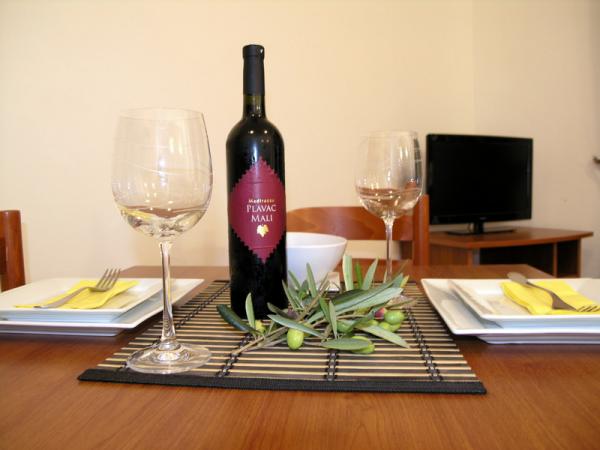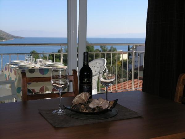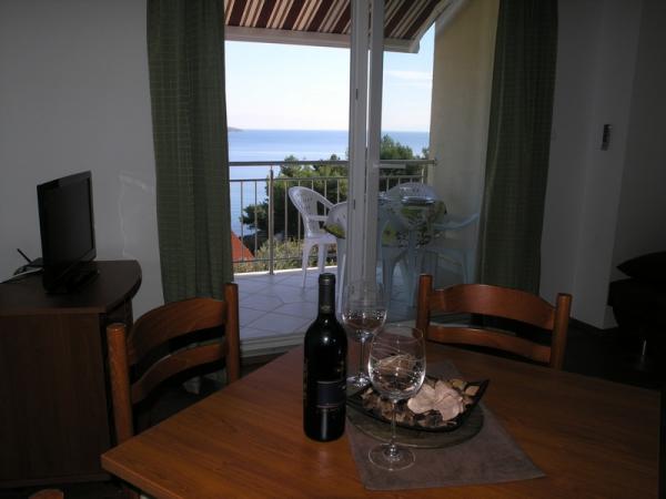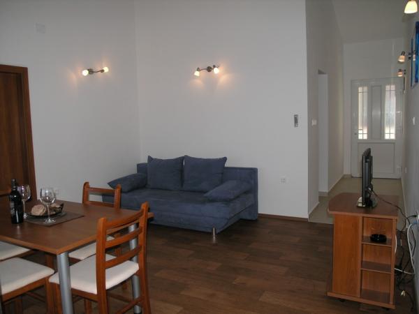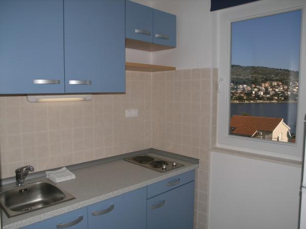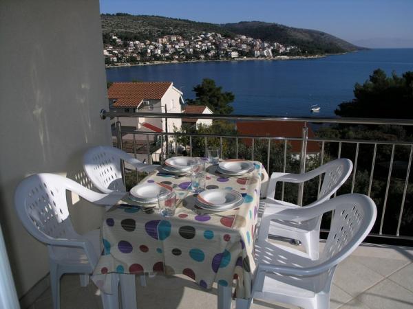 Z veseljem vam predstavljamo naše štiri apartmaje, ki se nahajajo na južni strani otoka Čiovo, blizu mesta Trogir v Okrug Gornji. To je ena od najbolj privlačnih turističnih destinacij na Hrvaškem, z 2670 sončnih ur na leto. V bližini mesta Trogir (2 km) in Split (30 km), ki so pod zaščito Unesca, ponuja možnost, da se odkrije več kot 2000 let staro kulturo. Ste dobrodošli v naših apartmajih s pogledom na mid-dalmatinske otoke Brač in Šolta, kjer boste našli sproščujoče vzdušje napolnjene s udobja in zasebnosti. Sodobni in klimatizirani apartmaji dvosobnih Luce in Maja in enosobno apartmaji Marin in DUJE ponujajo prijetno bivanje. V bližini peščene plaže (80 m), s pogledom na Jadransko morje. Vsi apartmaji so popolnoma opremljeni s satelitsko televizijo, WiFi pavšalnega internetne povezave, vse vključeno v ceno. Standardna oprema vključuje posteljnino, brisače, kuhinjske krpe.Voda v hiši, je varna za pitje vode iz pipe. Privatno parkirišče je na voljo (ena na stanovanje). Vljudno vas vabimo, da preživite svoje počitnice v naših apartmajih, da uživajo sredozemsko vzdušje in lepo kristalno čista voda ..