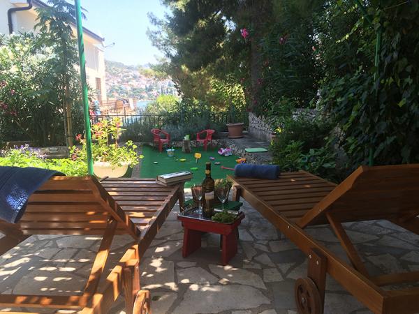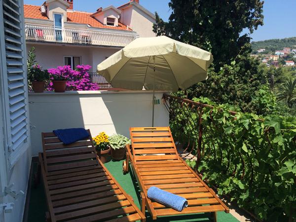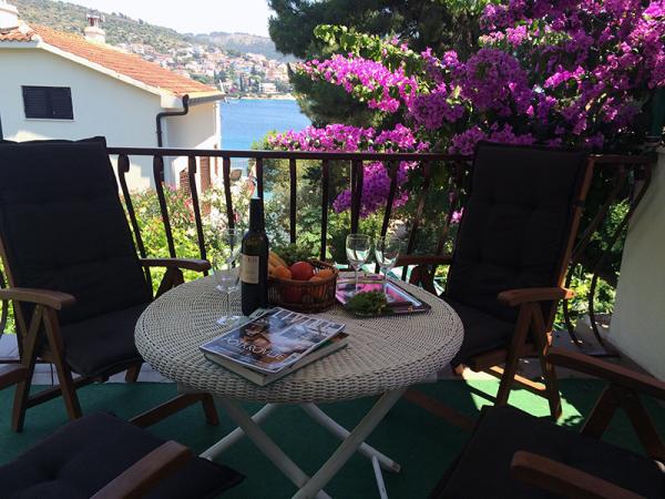 Popolnoma opremljeni apartmaji, ki se nahajajo v drugi vrsti do morja. Stanovanje v pritličju ima dve spalnici, v zgornjem pa 3 spalnice. Vsak apartma ima svojo veliko teraso. Objekt se nahaja 20 m od plaže, primeren za majhne otroke in neplavalce. V bližini je potapljaška šola, 15 minut hoje od majhnega središča s pošto, lekarna, kavarna, trgovina, zdravnik in majhna tržnica. 4 km od apartmaja je Trogir, mestni muzej pod Unescovo zaščito.
