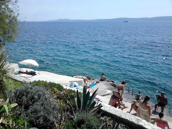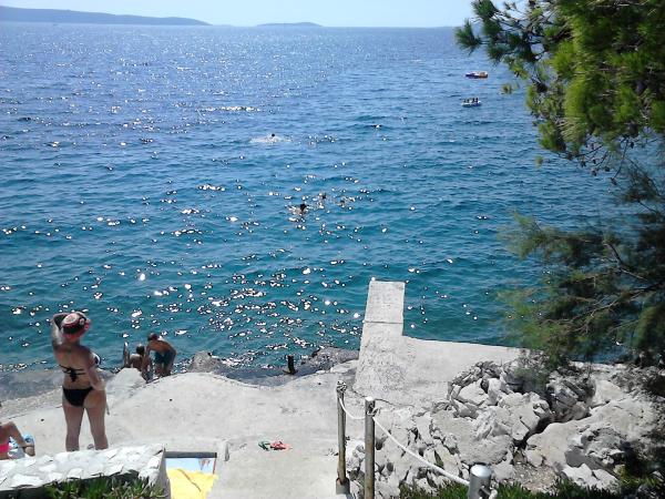Udobno stanovanje, lepo in mirni lokaciji v bližini čudovite skalnate obale, pozdravlja gostitelji. To je težje doseči ozki cesti iz Trogirja, ampak absolutno vredno truda! Lahko ladja iz bližnjega pristanišča Split ogleda.