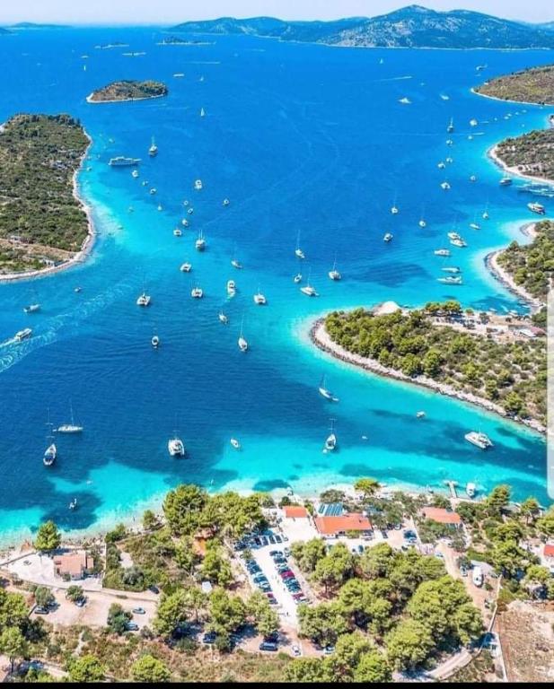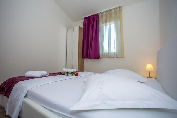 Popolnoma in moderno opremljeni apartmaji, s teraso s pogledom na morje in otoke. Nahaja se v bližini morja in plaž ter 20 min hoje do centra.