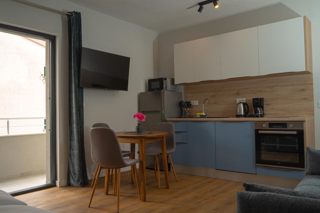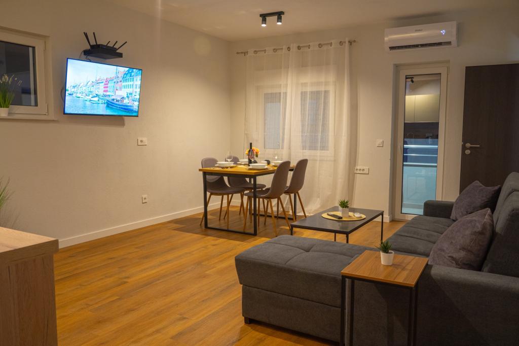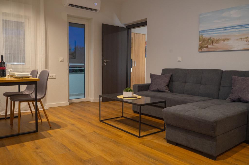 Dobrodošli v Apartmajih Neli, apartmajih, ki se nahajajo na očarljivem otoku Čiovo, ki je s celino povezan z dvema mostovoma. Le 2,5 km od zgodovinskega mesta Trogir. Novo urejena stavba, popolnoma prenovljena leta 2023. Luksuzni, moderni na novo urejeni apartmaji. Sobe so udobne in elegantno opremljene, postelje so nove z ergonomskimi vzmetnicami. Kuhinje so popolnoma opremljene s sodobnimi aparati, vse imajo pomivalni stroj in vse, kar potrebujete za pripravo hrane. V vsaki kopalnici je pralni stroj. Vsak apartma ima balkon s pogledom na morje za prijetno sprostitev. Poleg tega so na voljo ogrevan bazen, ležalniki, solarni tuš, zunanji žar za pripravo nepozabnih dobrot, zasebno parkirišče pod video nadzorom. Plaža, restavracije in trgovine so oddaljene 200 metrov, 7 minut hoje. Apartmaji Neli vam ponujajo vse za udoben oddih in nepozabne spomine.
