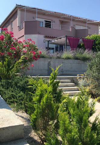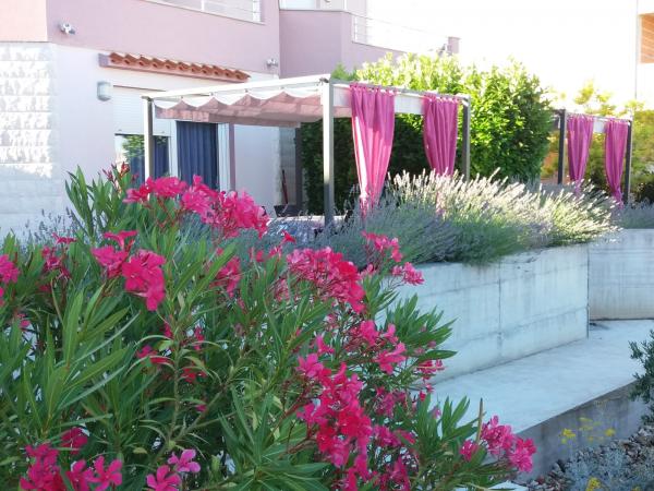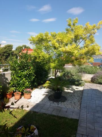 Nova sodobna stanovanja, le 40 metrov od morja in vse poletne zabave in aktivno preživljanje prostega časa. Namestitev je idealna za družine z otroki, ker ni prometa in velik travnat vrt je vrsta igrišče. Okoli hiše je precej vrt obogaten z mediteranskimi zelišči in cvetjem, in prispeva k prijetno bivanje. V oljčniku, ki se nahaja na dvorišču, kamin, kjer lahko gostje pripravijo jedi na žaru. Objekt se nahaja v mirnem delu otoka Brača, v mestu Trogir, v majhnem zalivu v nepoštednoj blizu Trogirja in 5 km od letališča Split.
