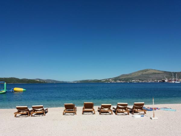 Turistična taksa je vključena v ceno.Lastniki lahko zagotovi prevoz iz letališča, str do apartmaja za plačilo, in so vedno na voljo gostom za vsako potrebo. Dolgo in lepo urejena plaža, ponuja različne možnosti za aktivne počitnice, zabavo, restavracije in druge zanimivosti za vso družino. Lahko najamete različne čolnov, skuterjev, koles. Poleg tega obstaja tudi vodni park za otroke, čolni vlečejo padalo, in tam je širok izbor organiziranega enodnevni izlet na otoke (ribe piknik), Kornate, v Medjugorju, slapove Krke, Split, Dubrovnik, Plitvička jezera ... Itd. Med County in Trogir, poleg ceste, je mogoče uporabiti stalni linijska in 10 minut plovbe, ki prihajajo v centru Trogirja (mestni spomenik na UNESCO