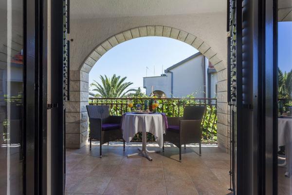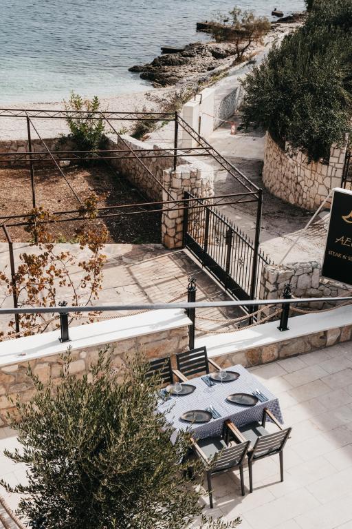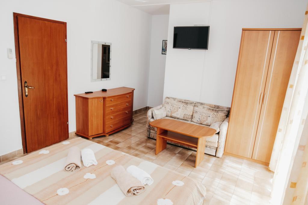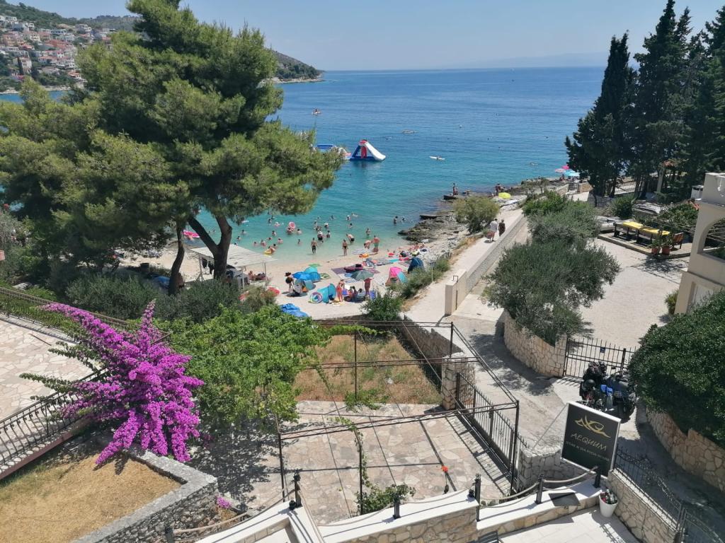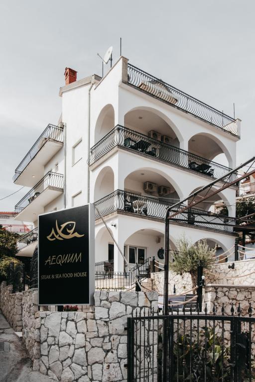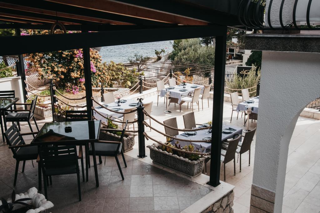 Opremljeni apartmaji in sobe, ki jih imamo tudi v naši ponudbi, znotraj objekta je naša restavracija z veliko teraso, oddaljenost od morja je deset metrov
