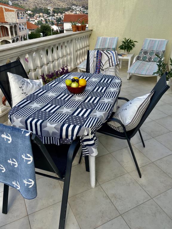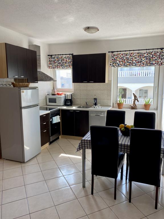 Lepo stanovanje s tem, kar potrebujete. Čudovit razgled z balkona in prijetna terasa za zajtrk in večerjo. Je mirno in lepo območje. Kot nalašč za nas kot štiričlansko družino, 2 otroka, stara 9 in 11 let. (Do oceana (tistega v bližini) je precej strmo in pločnik je grob, zato ne priporočam vozičkov ali invalidskih vozičkov.) Enostaven dostop, ne glede na to, ali želite plavati s pečin z lestvami, mojim dekletom je bilo to ljubše, ali če želite iti na plažo s kamenčki. Voda je čudovita!! Tako jasno! Imeli smo 2 čudovita tedna in Darko in njegovi starši so bili super in zelo koristni.