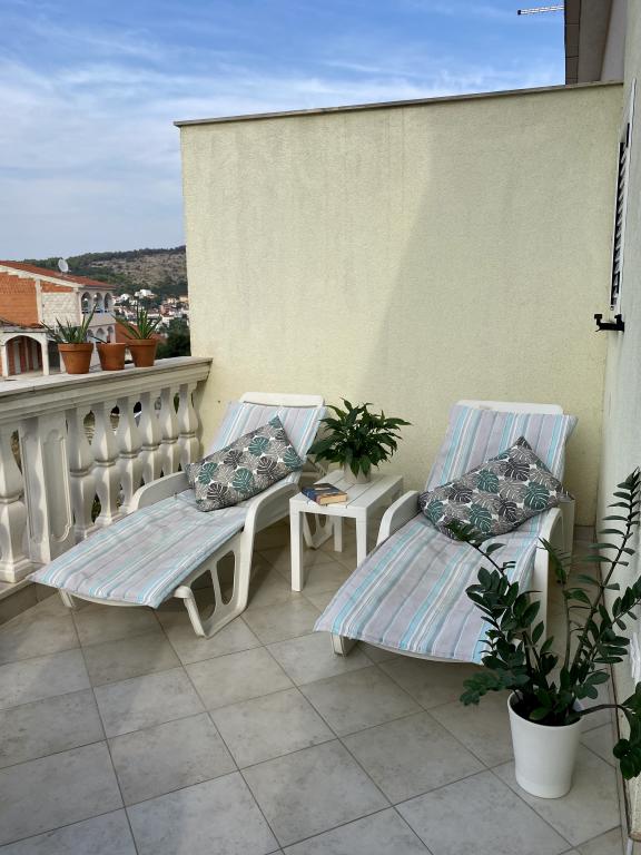 Fantastično Apartma z 2+1 posteljama in teraso, ki je bil popoln za našega psa. Zelo prijazna družina in gostitelj, ki sta bila ustrežljiva. Mirna in lepa lokacija blizu restavracije, morja, trgovine in vasi. Enostaven dostop s taksijem do Splita ali Trogirja.
