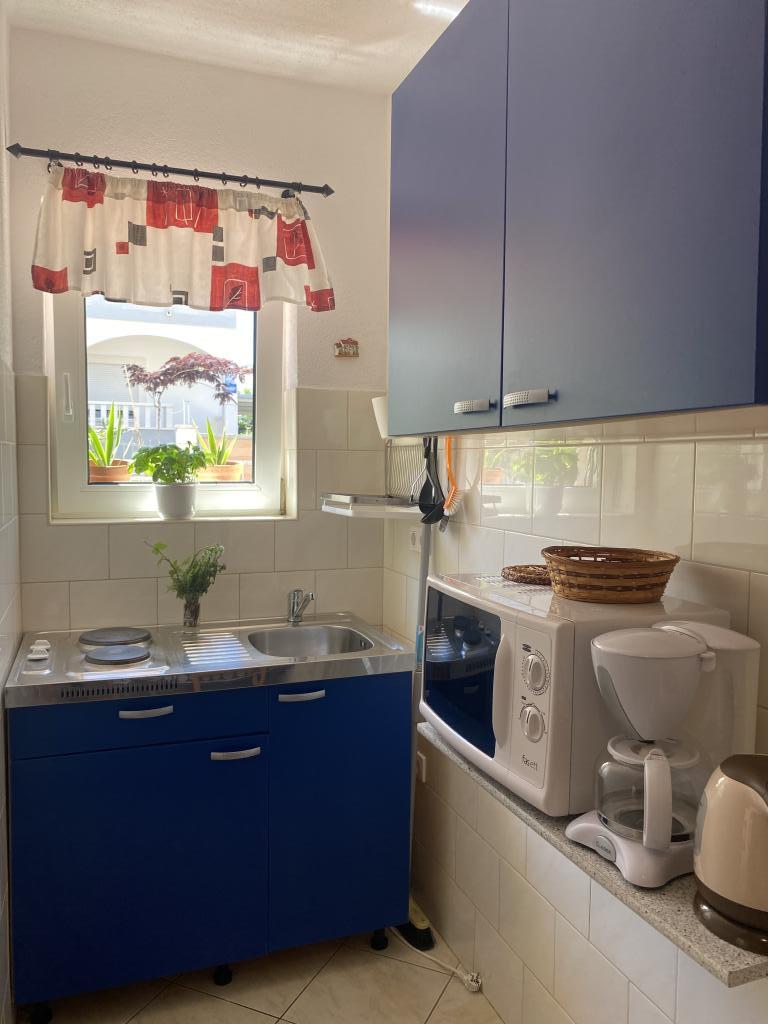 Popolna namestitev za nas. Na voljo je bilo sveže, čisto in vse potrebno za zajtrk in večerjo. Hladilnik in zamrzovalnik, mikrovalovna pečica, aparat za kavo. Pralni stroj, klima in tuš, itd. Blizu morja, morda nekaj več kot 100 m, veliko kopališč je zelo blizu, lahko se kopate ob celi obali, večinoma skale, ampak tudi plaže. Stanovali smo v 2. nadstropju. 2 balkona v 2 različnih smereh s pogledom na morje. Tiho in mirno, v bližini več restavracij, peš dostop do trgovin in restavracij, plaže in najema avtomobilov. Če želite doseči nočno življenje, kot je Trogir, je blizu s taksijem. Še se bomo vrnili. Hvala Darko za čudovite počitnice. Zelo lahko priporočamo Darko in apartma. Prav tako je zelo prijazen in je dal dobre nasvete o hrani in znamenitostih. Anne in Johan z družino.