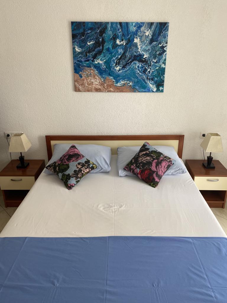 Prijetno stanovanje v 3. nadstropju z enim balkonom s pogledom na morje. Idealno z dvema balkonoma, da lahko izbirate med soncem in senco. Eden je nekoliko večji in je idealen za sedenje in prehranjevanje. Dobra kuhinja z vsem, kar potrebujete za vsakdanje življenje. Klimatska naprava v kuhinji, dobri ventilatorji v spalnicah. Dve dobri spalnici z zakonskimi posteljami. Dobro parkiranje znotraj vrat, območje pa je mirno in varno. Zelo dober stik z najemodajalcem in družino. Bili so izjemno ustrežljivi in ustrežljivi.