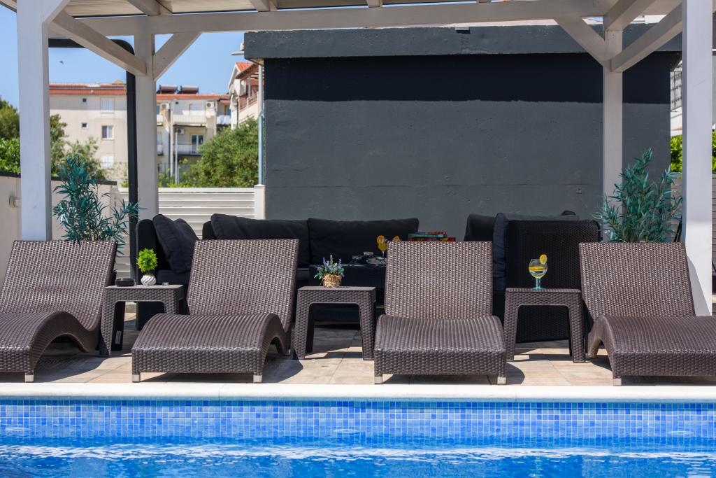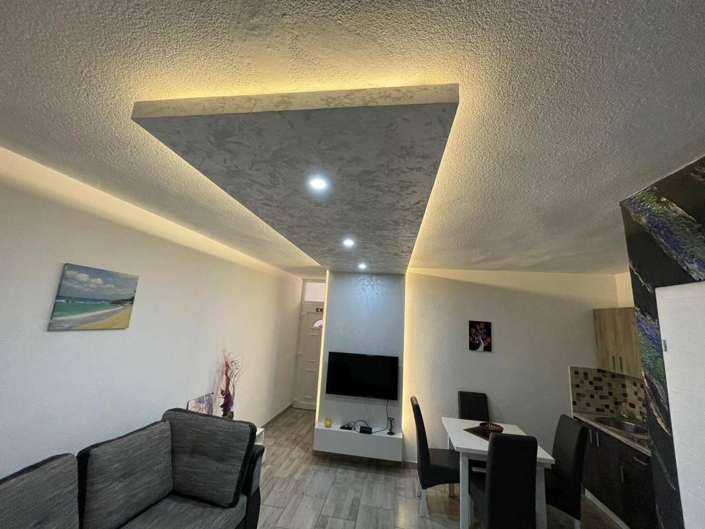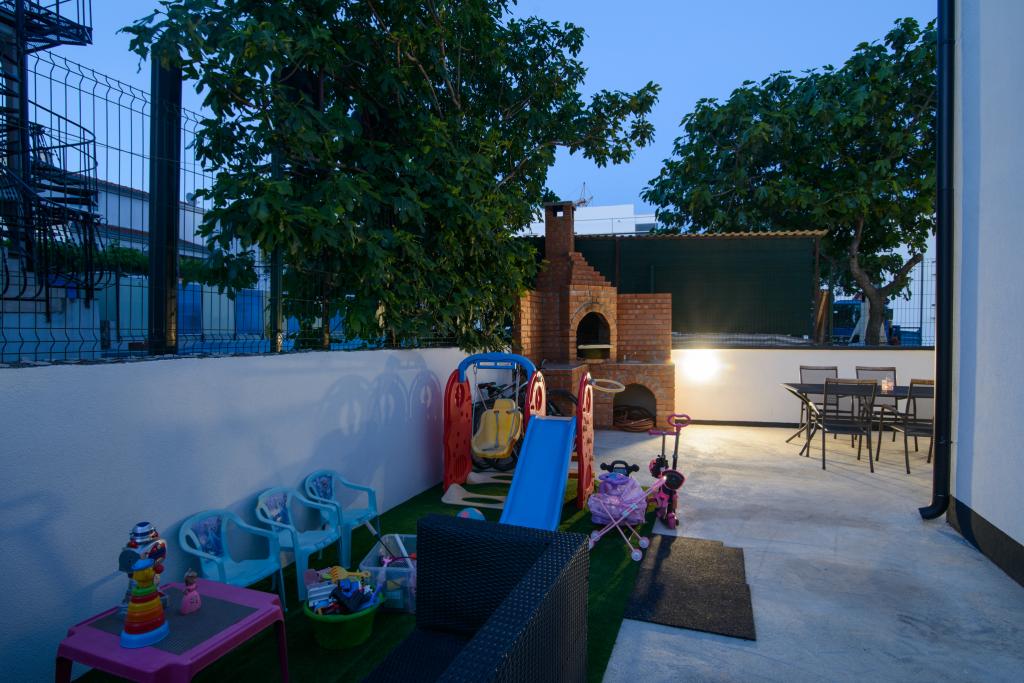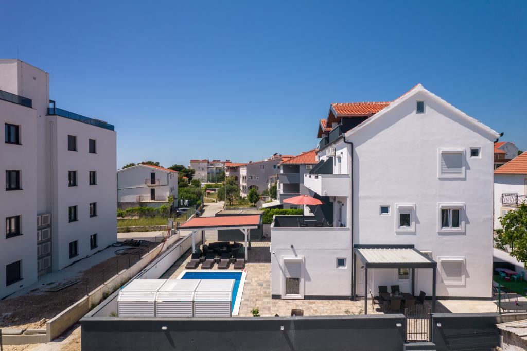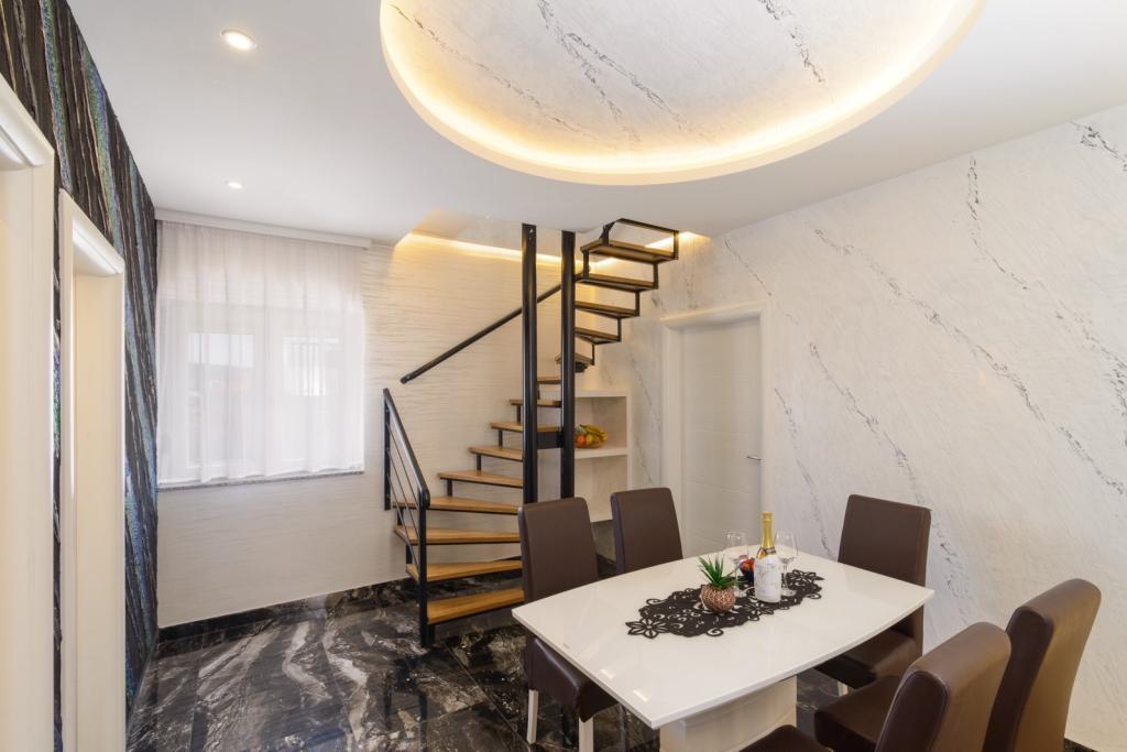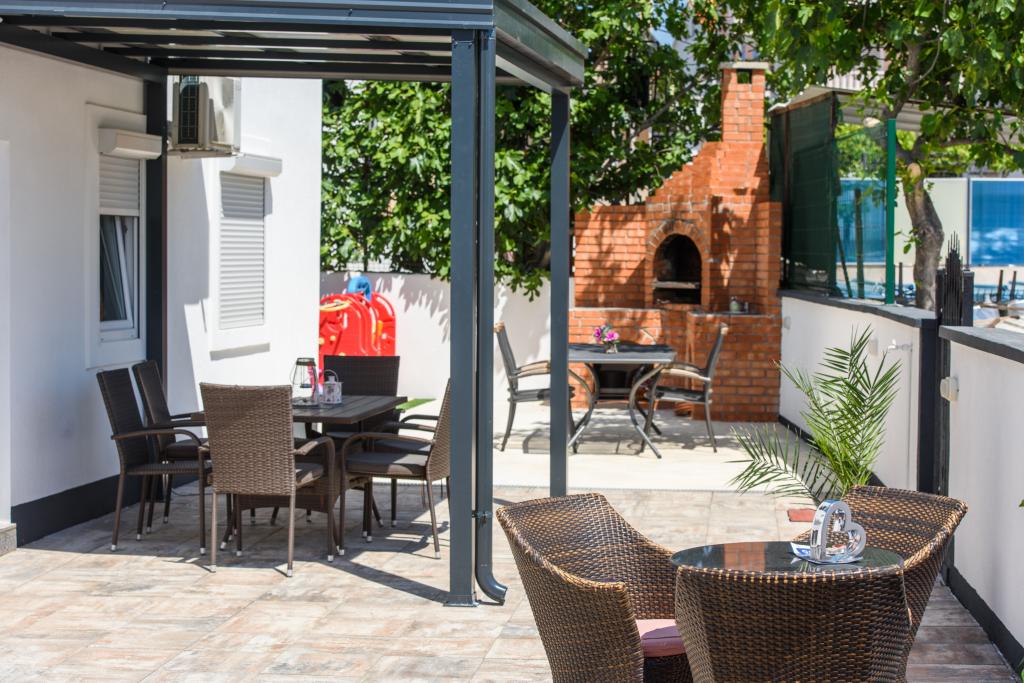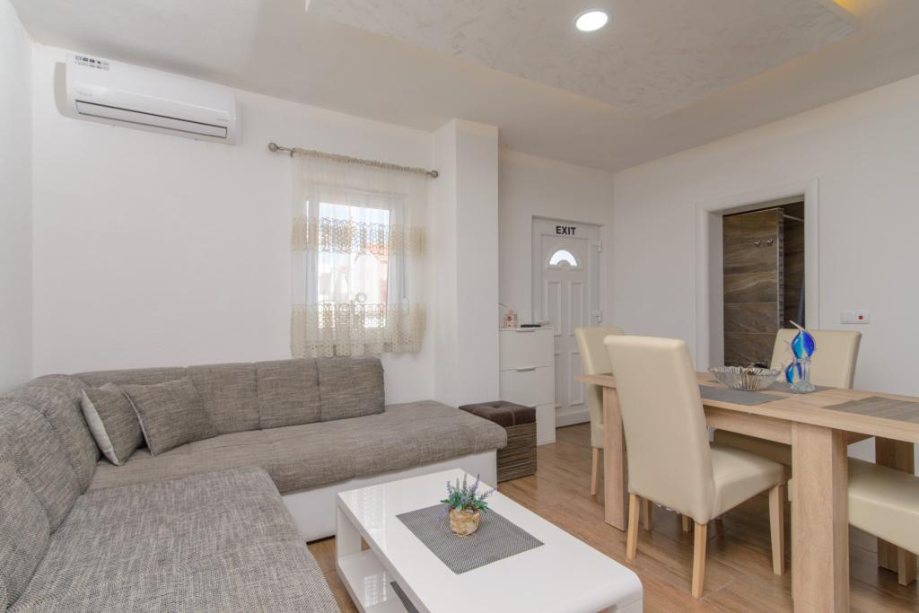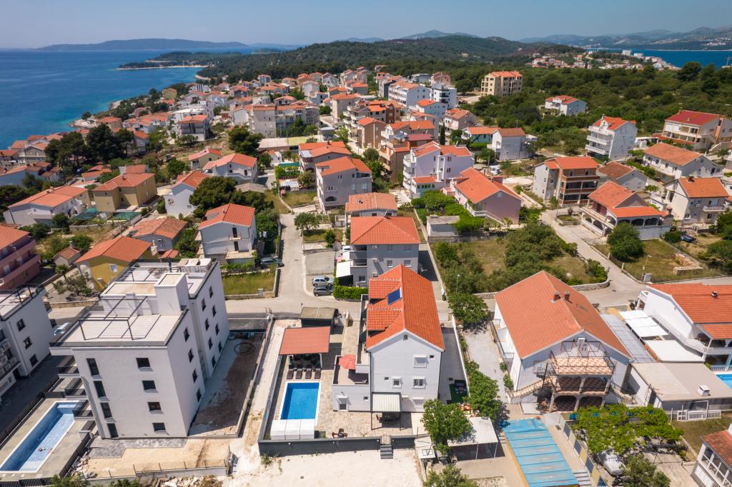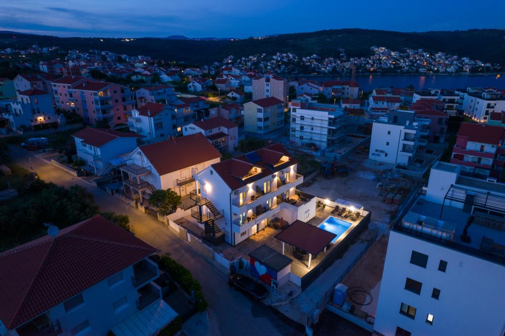 Apartmaji se nahajajo v novo opremljenem Villi ET A v mestu Okrug Gornji na otoku Čiovo, ki je povezan z zgodovinskim mestom Trogir. Popolnoma in novo opremljeni apartmaji v čudovitem delu otoka Čiovo. Le 70 m stran od morja. Pred apartmajem je bazen in velik žar. Apartmaji vsebujejo vse, kar potrebujete za družinske počitnice z otroki ali prijatelji. Vila je bila zgrajena leta 2017 in vsebuje sedem apartmajev, sodobnih in prilagojenih za turizem. Objekt je od središča mesta oddaljen 10 minut hoje, kjer lahko najdete: ambulante, lekarne, pošto, različne blagovne znamke, pijače s svežimi živili, vrsto restavracij in kavarn ter znamenito plažo Copacabana. In le 3, 5 km od centra Trogirja lahko greste z avtomobilom, avtobusom ali čolnom. Želimo vsem gostom dobrodošlo in prijetno poletje.