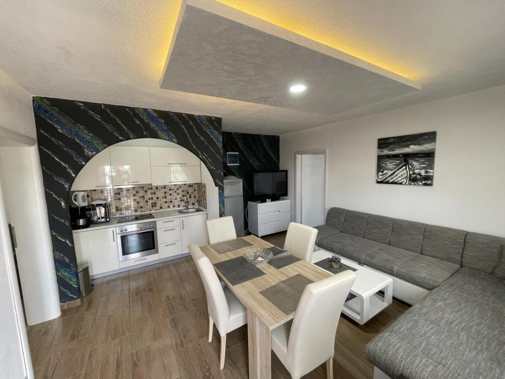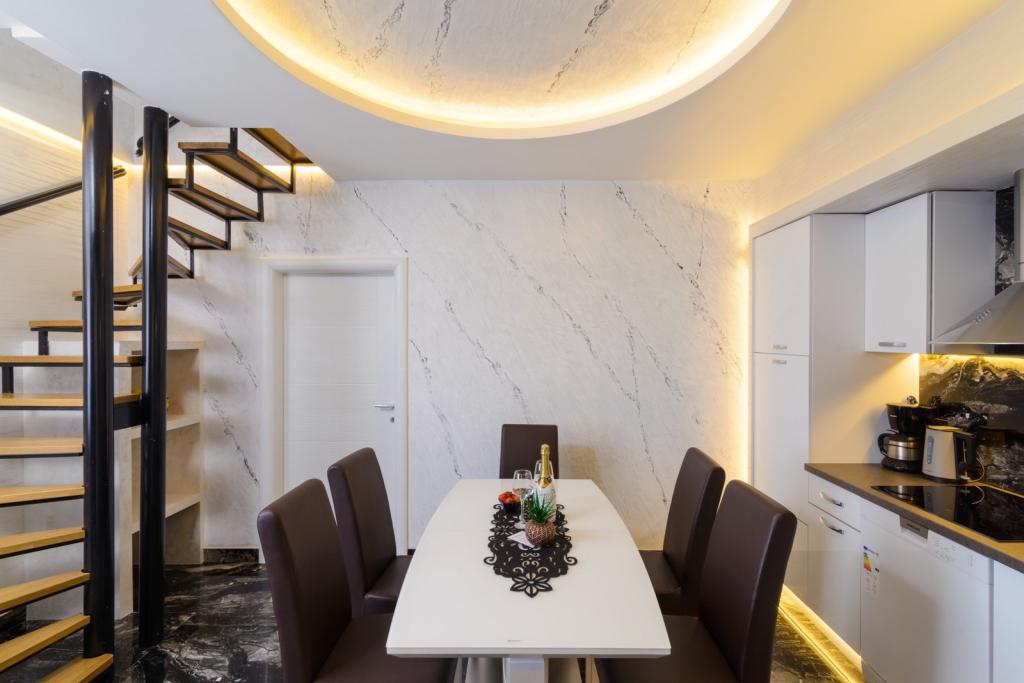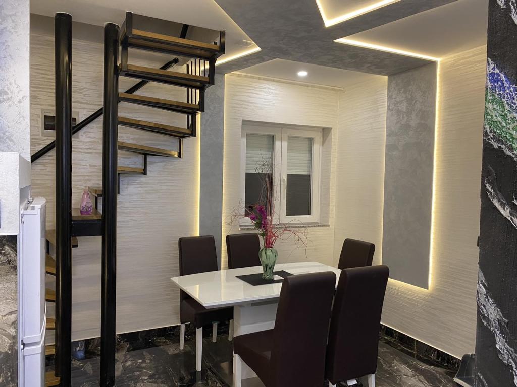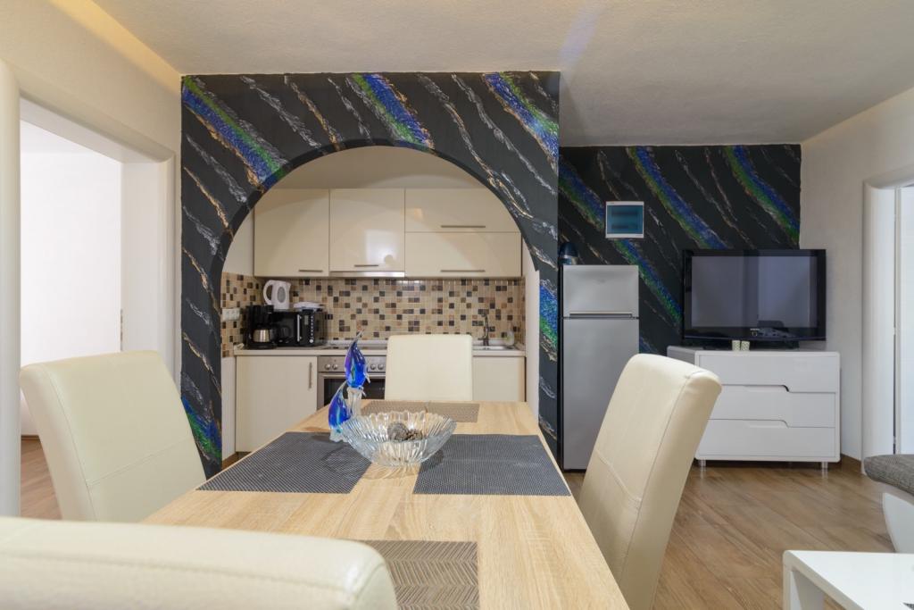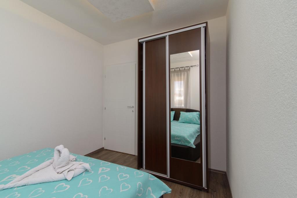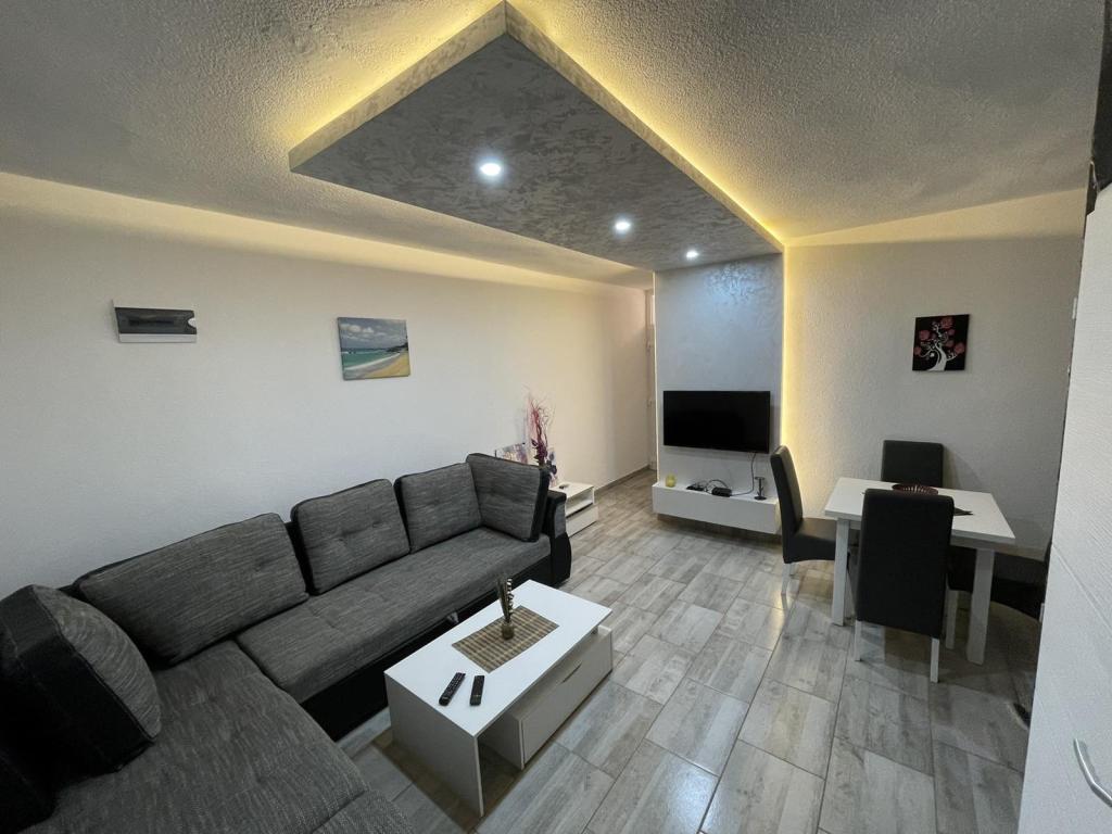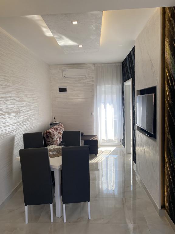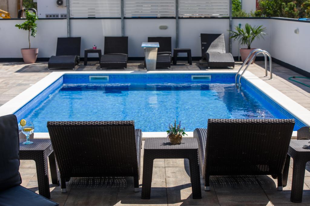 Apartmaji se nahajajo v novo opremljenem Villi ET A v mestu Okrug Gornji na otoku Čiovo, ki je povezan z zgodovinskim mestom Trogir. Popolnoma in novo opremljeni apartmaji v čudovitem delu otoka Čiovo. Le 70 m stran od morja. Pred apartmajem je bazen in velik žar. Apartmaji vsebujejo vse, kar potrebujete za družinske počitnice z otroki ali prijatelji. Vila je bila zgrajena leta 2017 in vsebuje sedem apartmajev, sodobnih in prilagojenih za turizem. Objekt je od središča mesta oddaljen 10 minut hoje, kjer lahko najdete: ambulante, lekarne, pošto, različne blagovne znamke, pijače s svežimi živili, vrsto restavracij in kavarn ter znamenito plažo Copacabana. In le 3, 5 km od centra Trogirja lahko greste z avtomobilom, avtobusom ali čolnom. Želimo vsem gostom dobrodošlo in prijetno poletje.