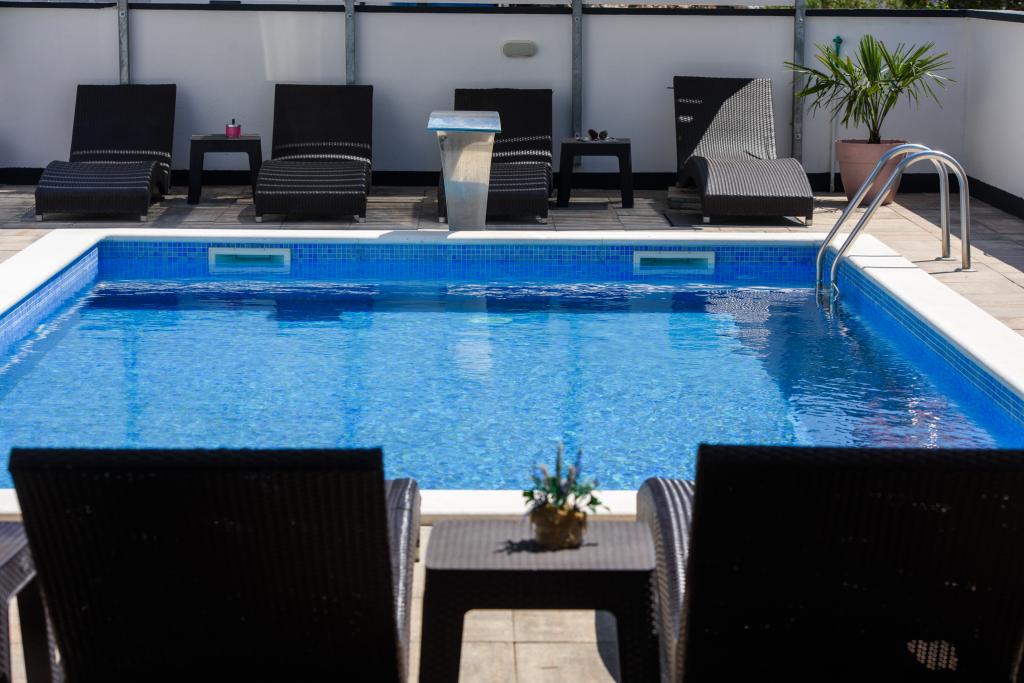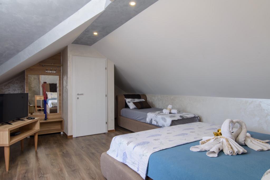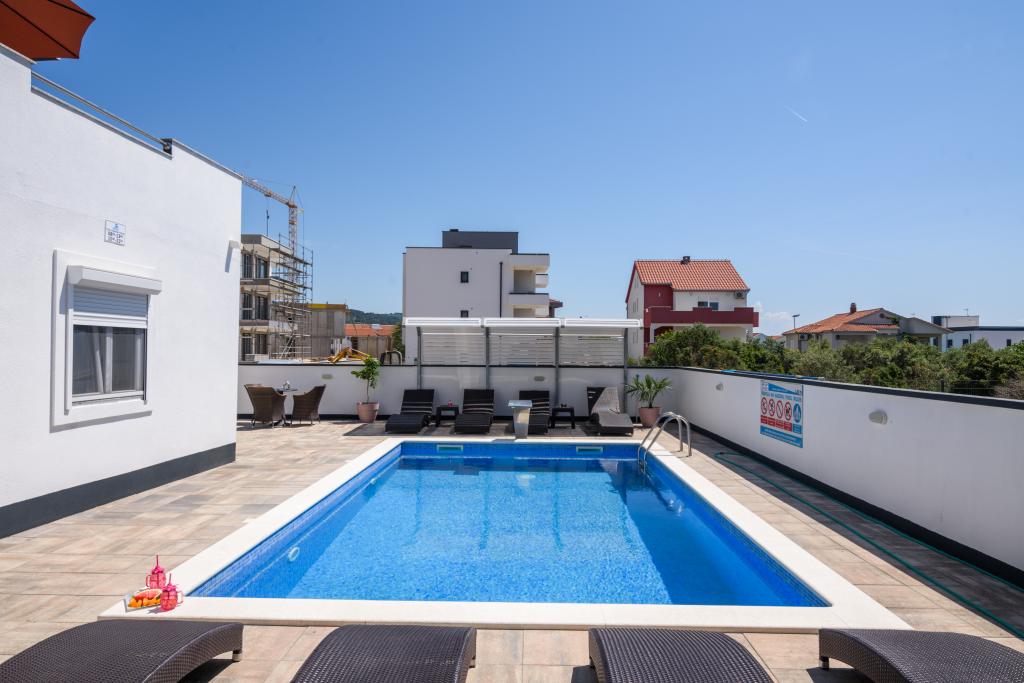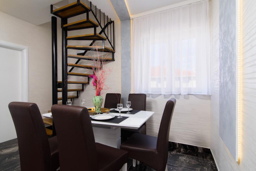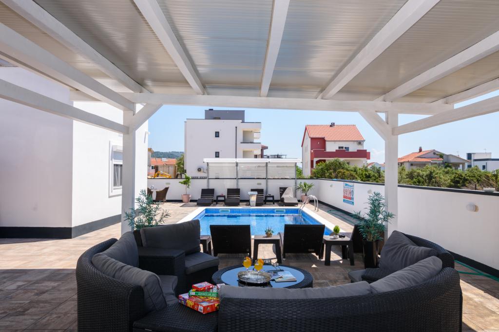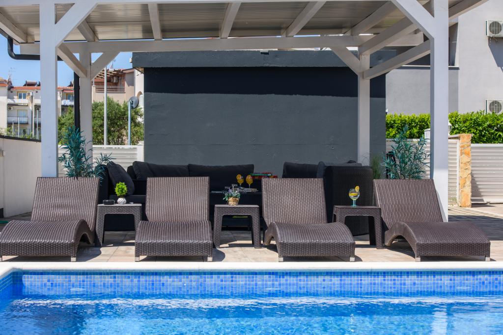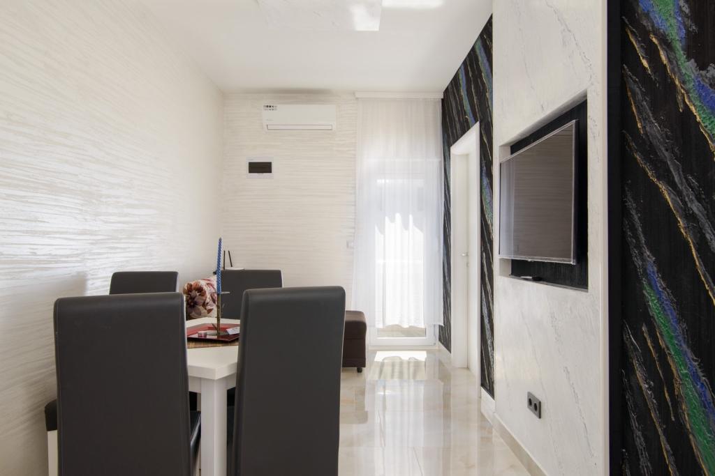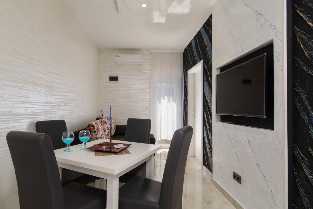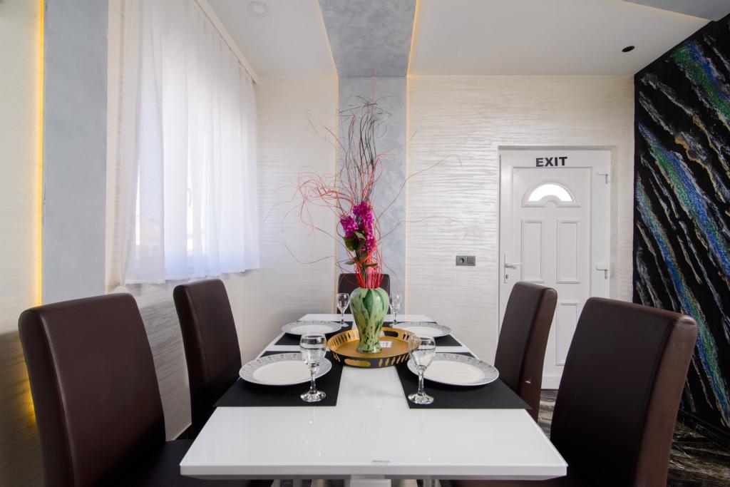 Apartmaji se nahajajo v novo opremljenem Villi ET A v mestu Okrug Gornji na otoku Čiovo, ki je povezan z zgodovinskim mestom Trogir. Popolnoma in novo opremljeni apartmaji v čudovitem delu otoka Čiovo. Le 70 m stran od morja. Pred apartmajem je bazen in velik žar. Apartmaji vsebujejo vse, kar potrebujete za družinske počitnice z otroki ali prijatelji. Vila je bila zgrajena leta 2017 in vsebuje sedem apartmajev, sodobnih in prilagojenih za turizem. Objekt je od središča mesta oddaljen 10 minut hoje, kjer lahko najdete: ambulante, lekarne, pošto, različne blagovne znamke, pijače s svežimi živili, vrsto restavracij in kavarn ter znamenito plažo Copacabana. In le 3, 5 km od centra Trogirja lahko greste z avtomobilom, avtobusom ali čolnom. Želimo vsem gostom dobrodošlo in prijetno poletje.