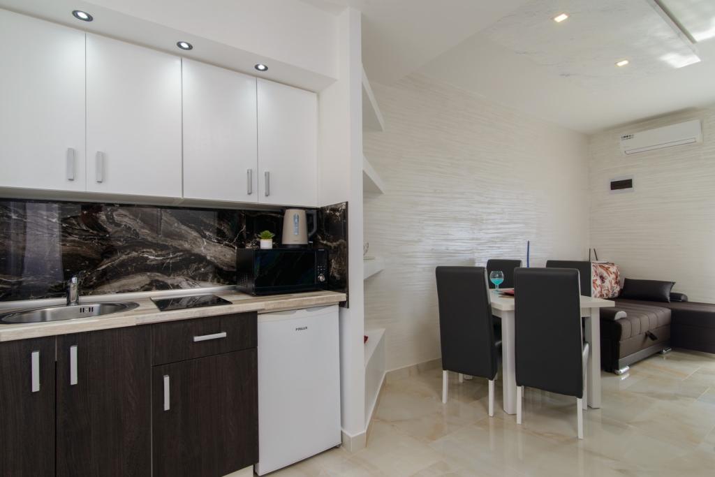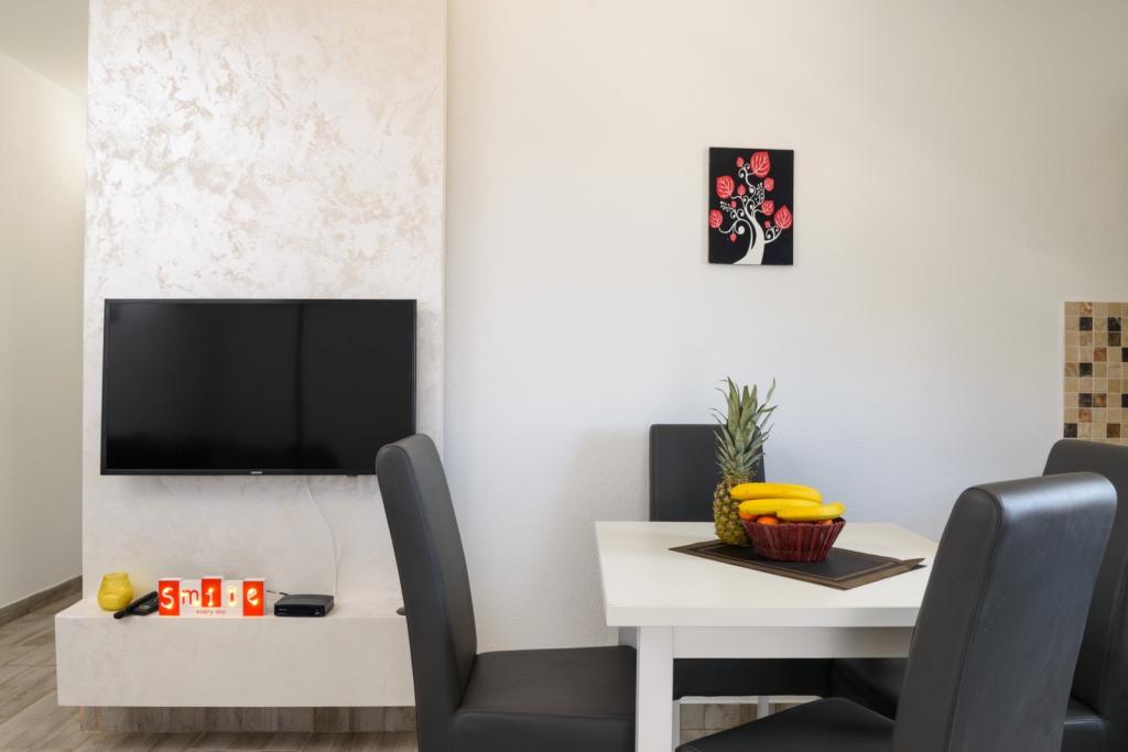 Turistična taksa je vključena v ceno.Gostom je na voljo brezplačno parkirišče, uporaba tuš kabine in lastno vrtno pohištvo, Brezplačna uporaba klimatske naprave, toaletnih sredstev, posteljnega perila in vse, kar ponuja stanovanje. Vsak apartma je popolnoma opremljen. Oprema: sušilec za lase, brisače, posteljno perilo, opekač kruha, kuhalnik vode, mikrovalovna pečica, hladilnik z zamrzovalnikom, aparat za kavo, likalnik, likalna deska, TV z ravnim zaslonom, SAT TV, sef.