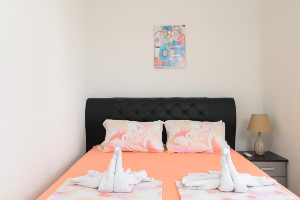 Preberite več Namestitvene enotePo rezervaciji bo gost moral plačati predujem v višini 30% celotnega zneska na računu, ki ga prejme, preostanek pa mora plačati ob prihodu na naslov. Ček v: po 14h Chek out: do 10h. Hišni ljubljenčki ne smejo ostati v hiši. Brisače se vsakih 3 dni brezplačno menjavajo in perilo vsakih 7 dni. Če morate predhodno spremeniti to storitev, vam bomo zaračunali. Možnost najema otroške posteljice z doplačilom od 5 € na dan. (pred knjigo) Končno čiščenje se zaračuna v apartmaju v znesku 20 €.
